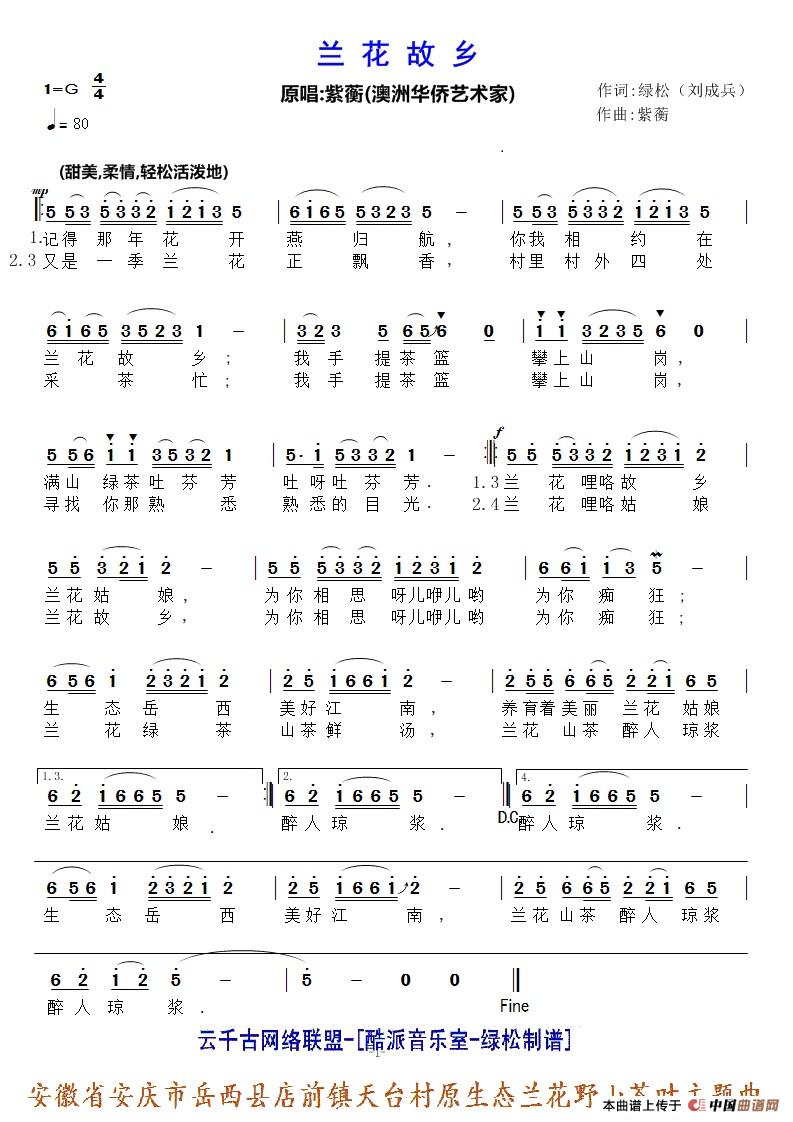 《兰花故乡》(甜美,柔情,轻松活泼地)