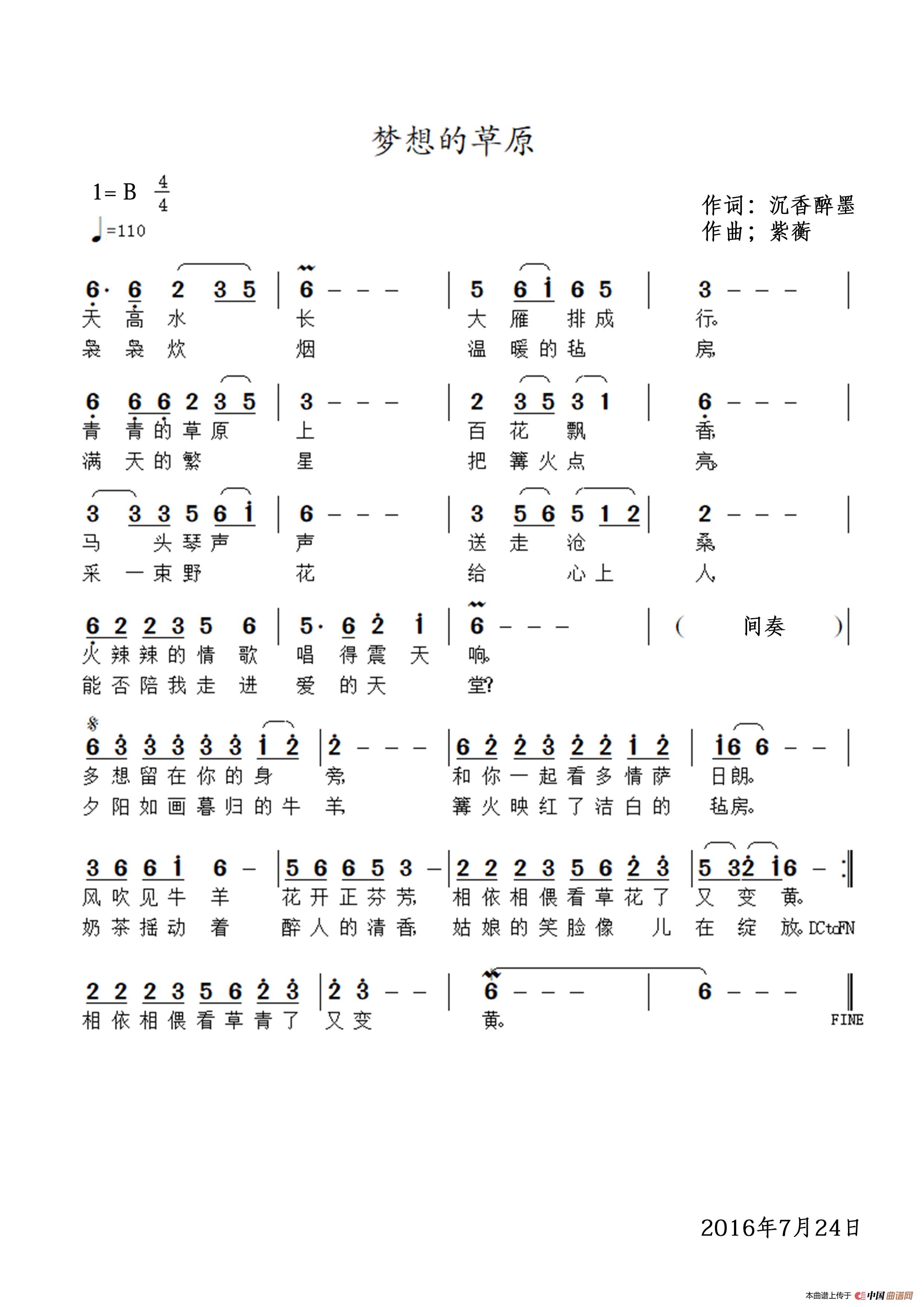 《梦想的草原》文本歌词