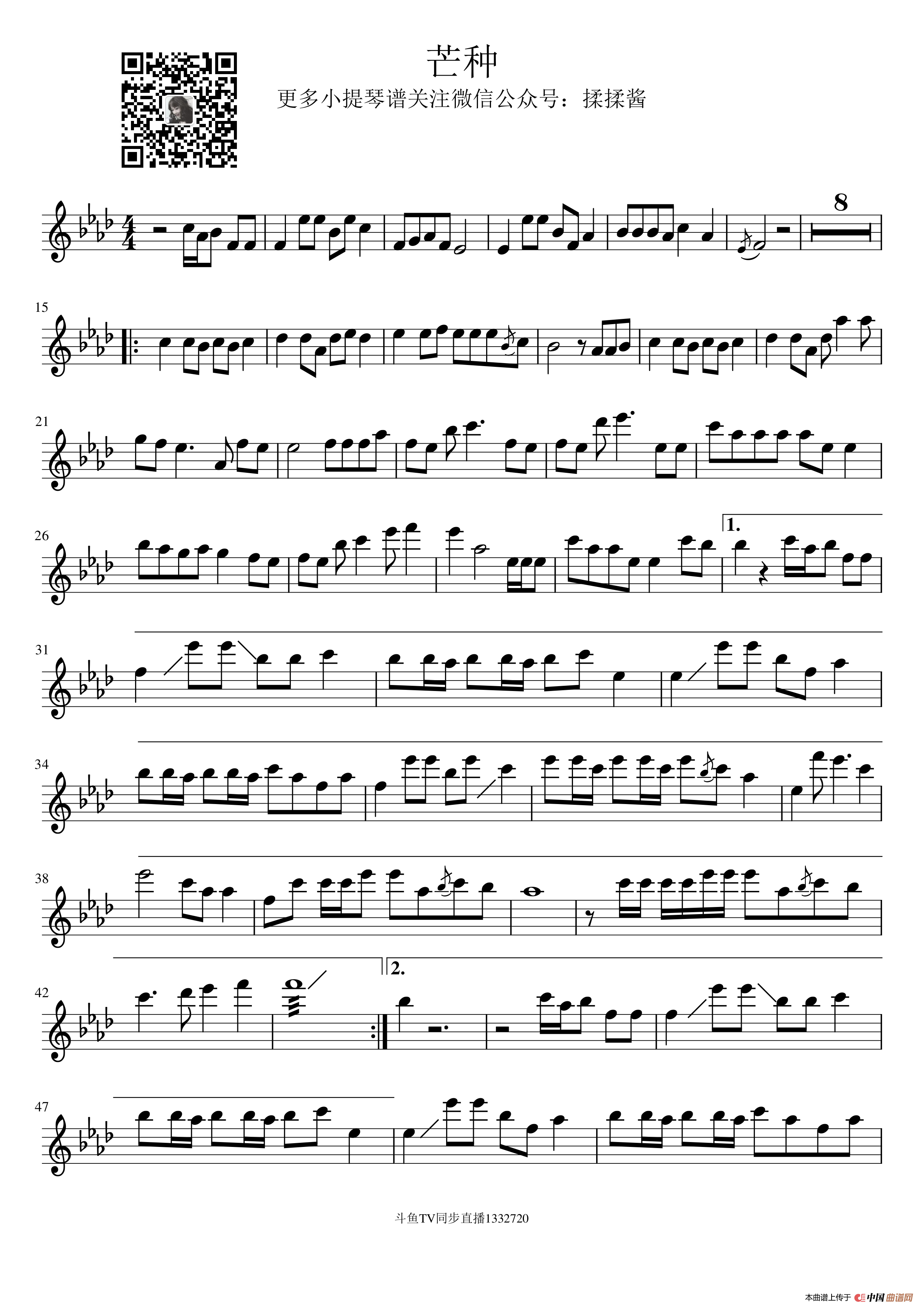 芒种 小提琴谱 小提琴曲谱(芒种 小提琴琴谱 赵方婧)