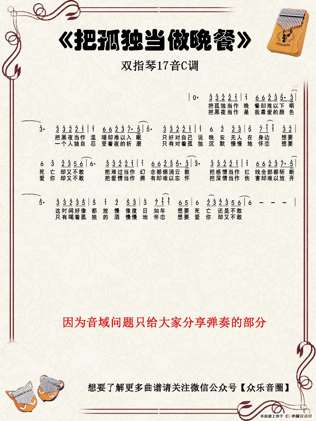 提示:在曲谱图片上单击右键,选择“图片另存为...”即可将曲谱保存到您的电脑中,打印时候可将图片插入到WORD中,调整合适大小打印即可。