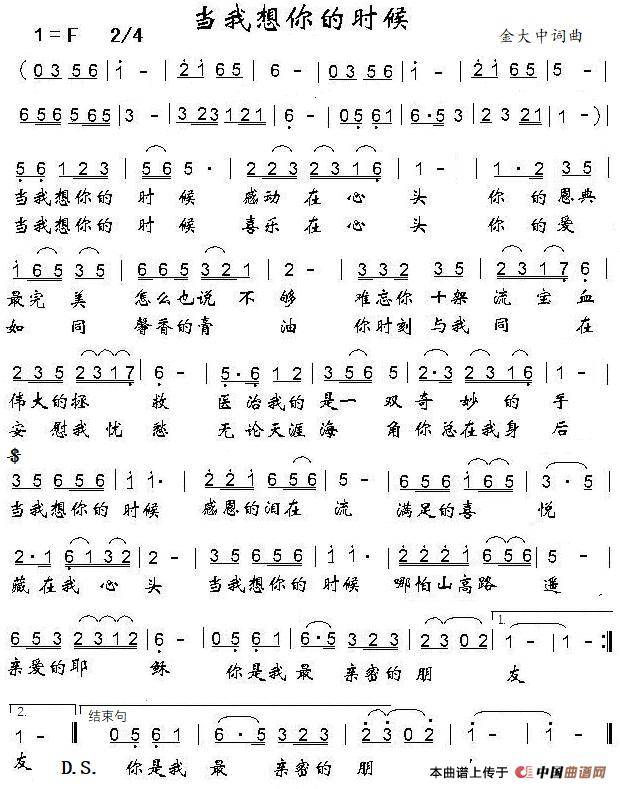 关于《当我想你的时候》曲谱的评论