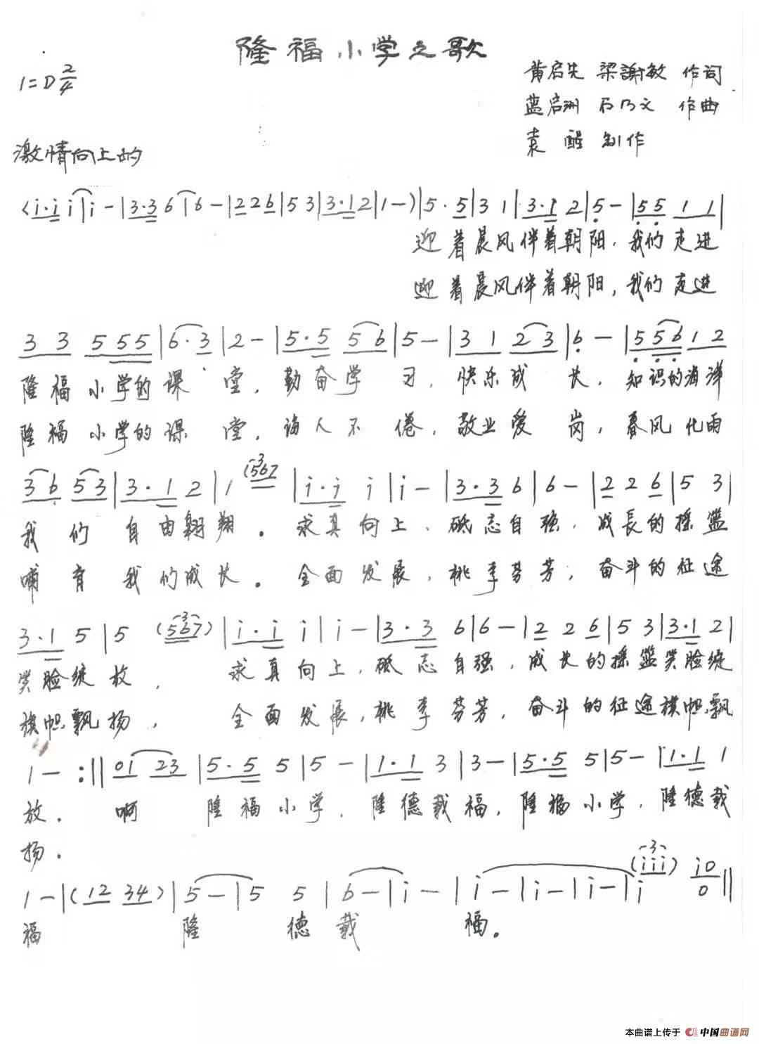 作词:黄启先 梁谢敏 作曲:黄启州 石乃文 来源:校歌制作 上传:隆福小学
