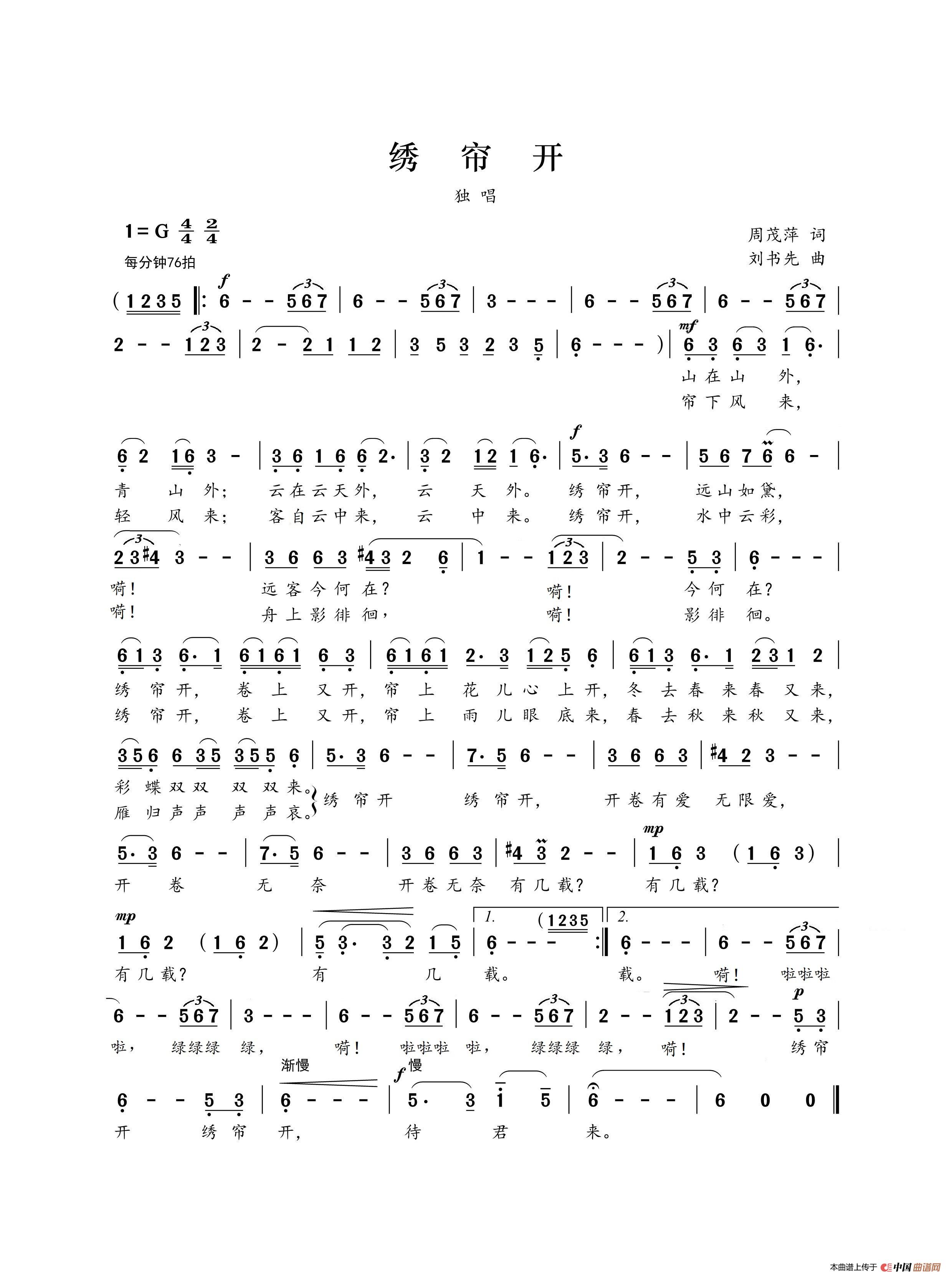 提示:在曲谱图片上单击右键,选择“图片另存为...”即可将曲谱保存到您的电脑中,打印时候可将图片插入到WORD中,调整合适大小打印即可。