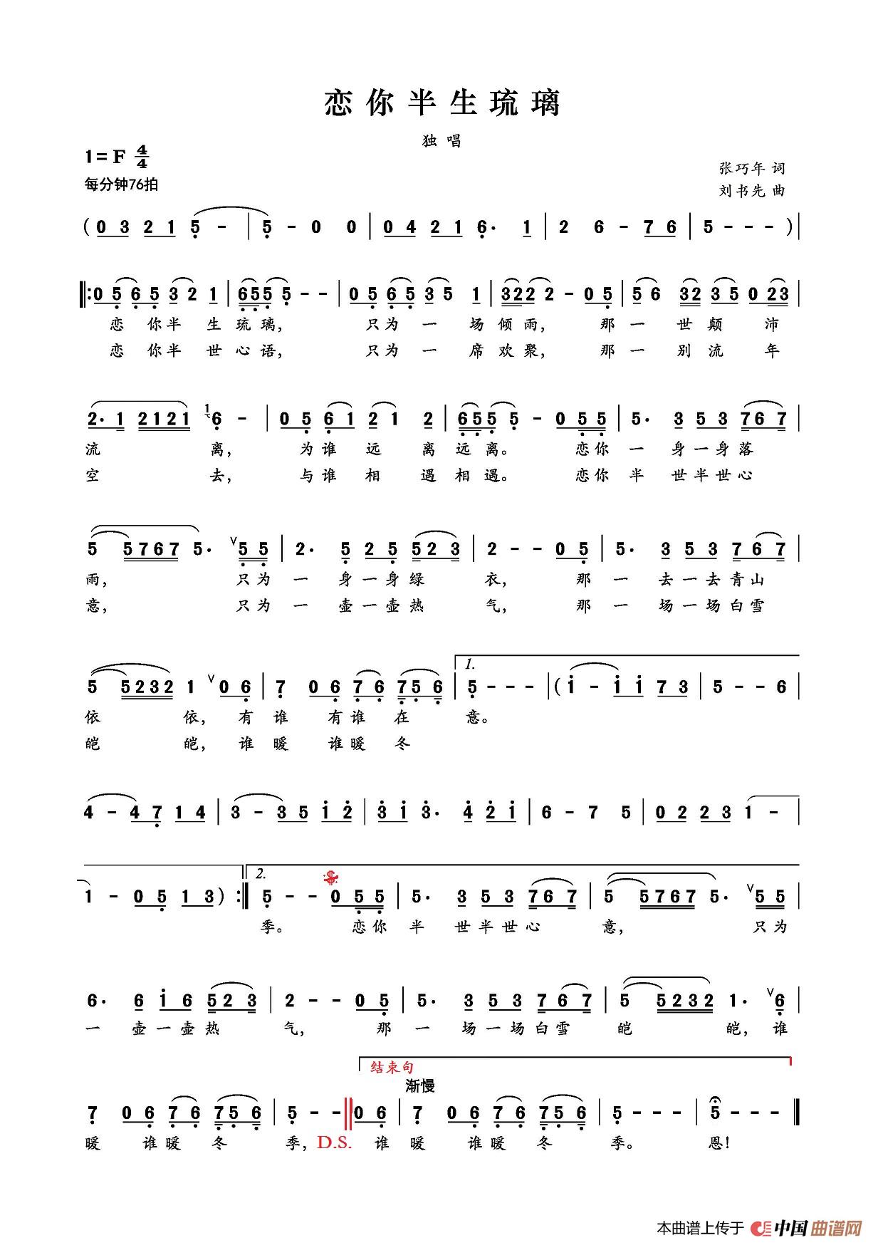关于《恋你半生琉璃》曲谱的评论