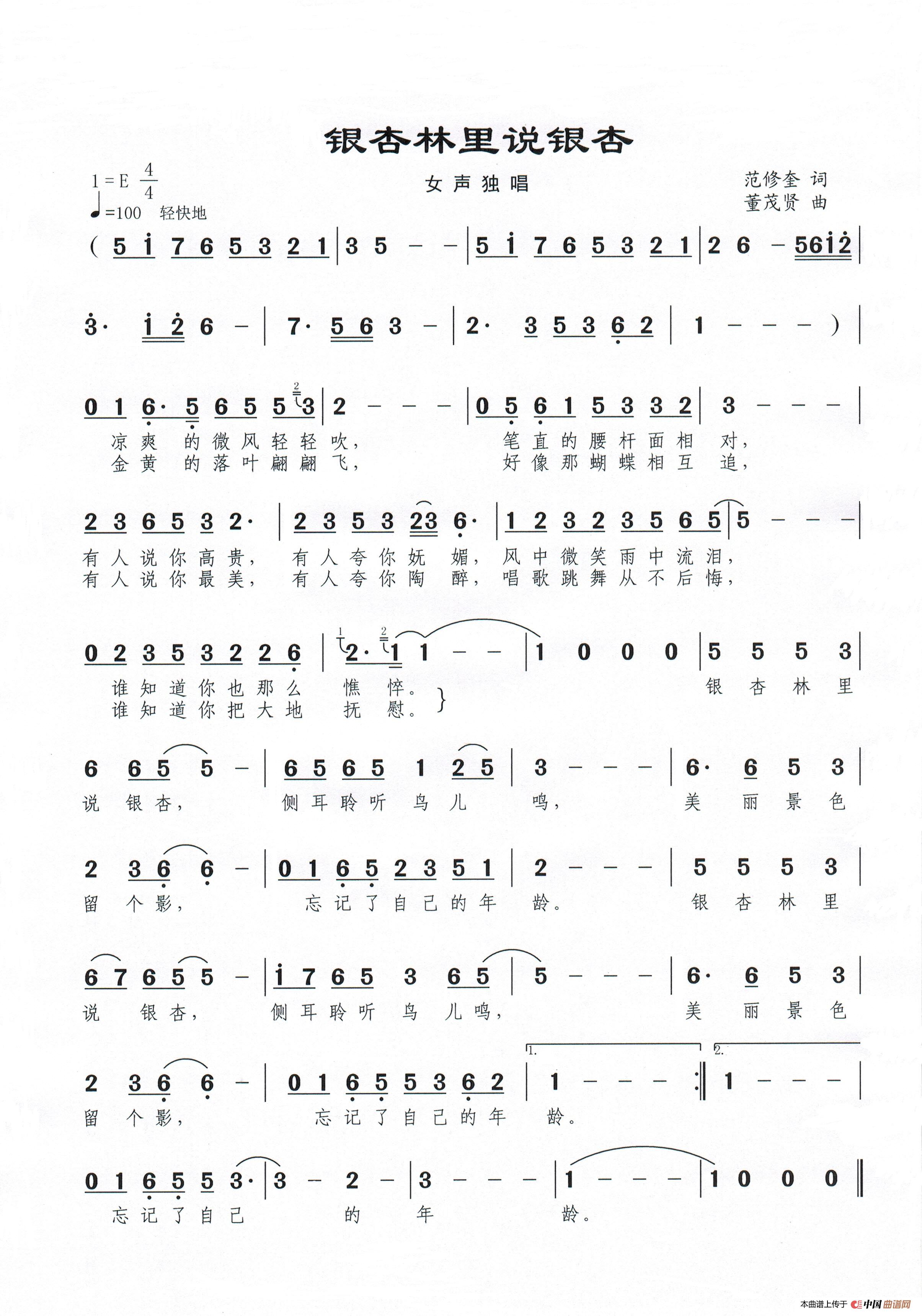 关于《银杏林里说银杏》曲谱的评论