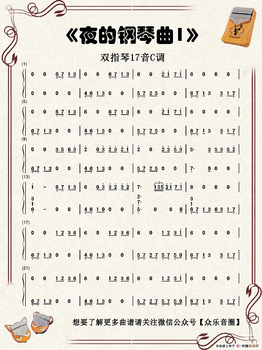 夜的钢琴曲5(双指琴卡林巴琴简谱)