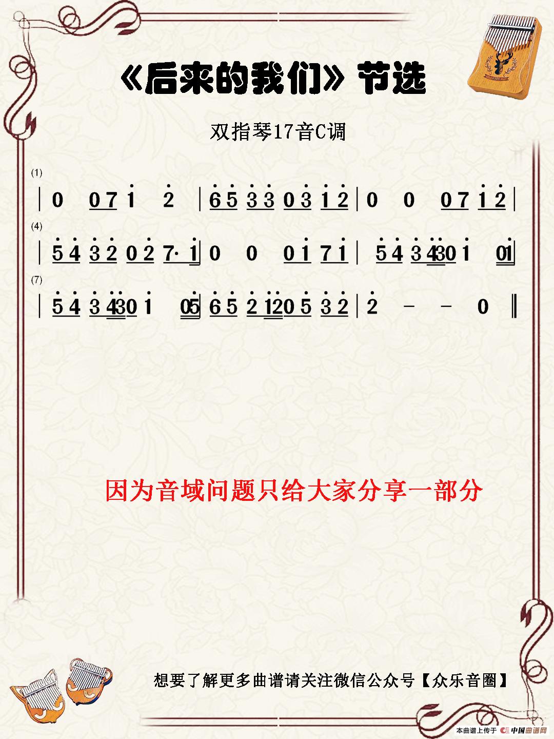 后来的我们(双指琴卡林巴琴简谱)