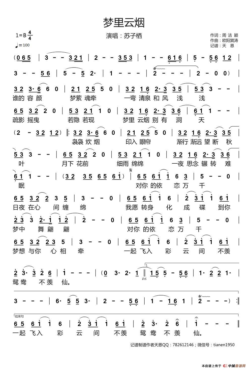 关于《梦里云烟》曲谱的评论