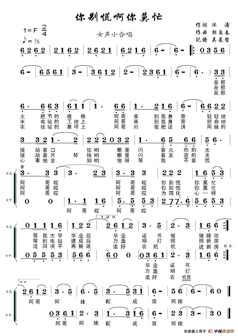 提示:在曲谱图片上单击右键,选择“图片另存为...”即可将曲谱保存到您的电脑中,打印时候可将图片插入到WORD中,调整合适大小打印即可。