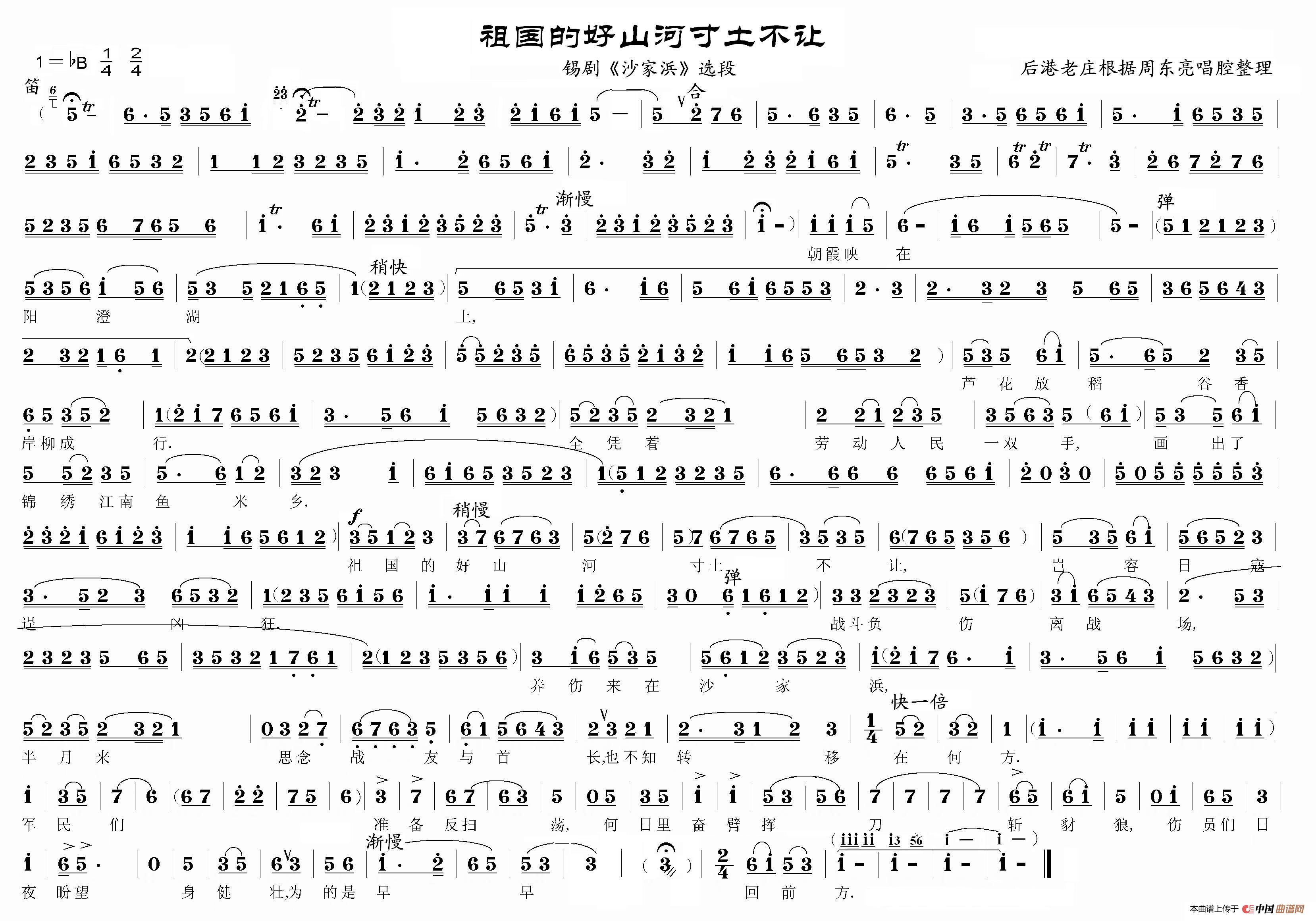 关于《祖国的好山河寸土不让》曲谱的评论