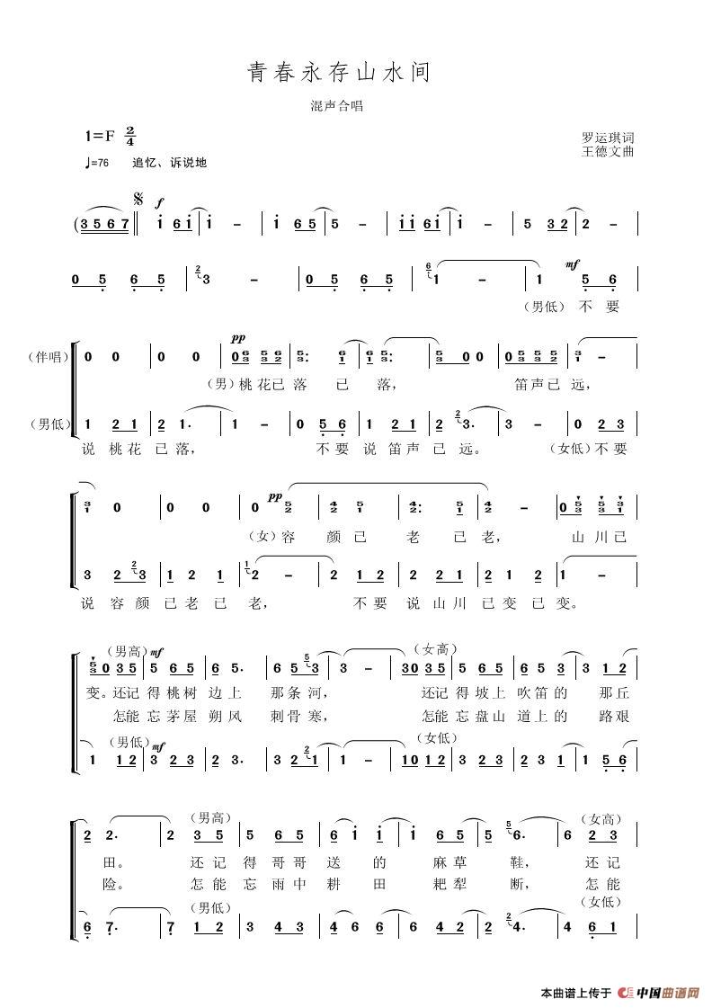 关于《青春永驻山水间》曲谱的评论