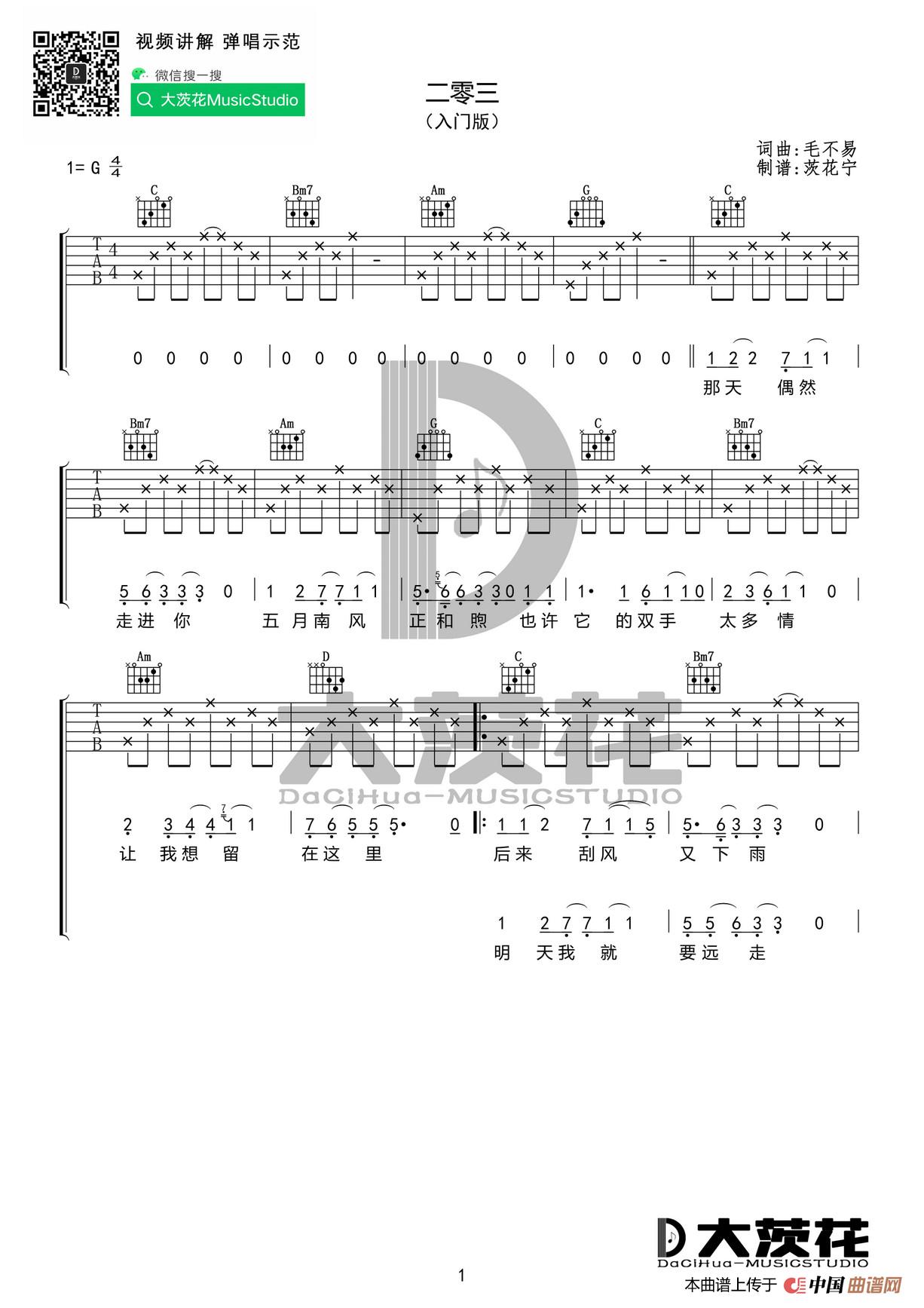 关于《毛不易《二零三》吉他谱》曲谱的评论