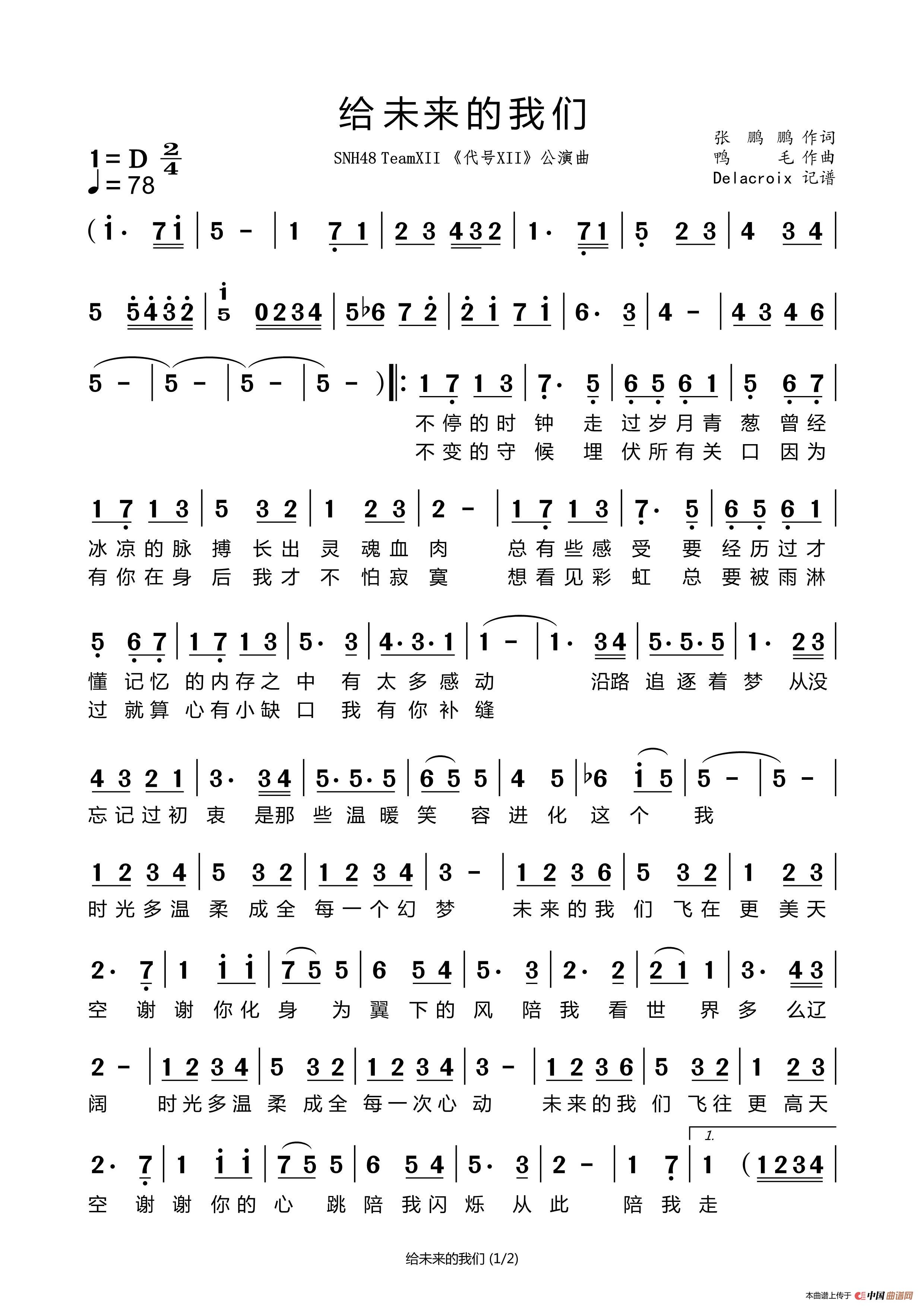 提示:在曲谱图片上单击右键,选择“图片另存为...”即可将曲谱保存到您的电脑中,打印时候可将图片插入到WORD中,调整合适大小打印即可。