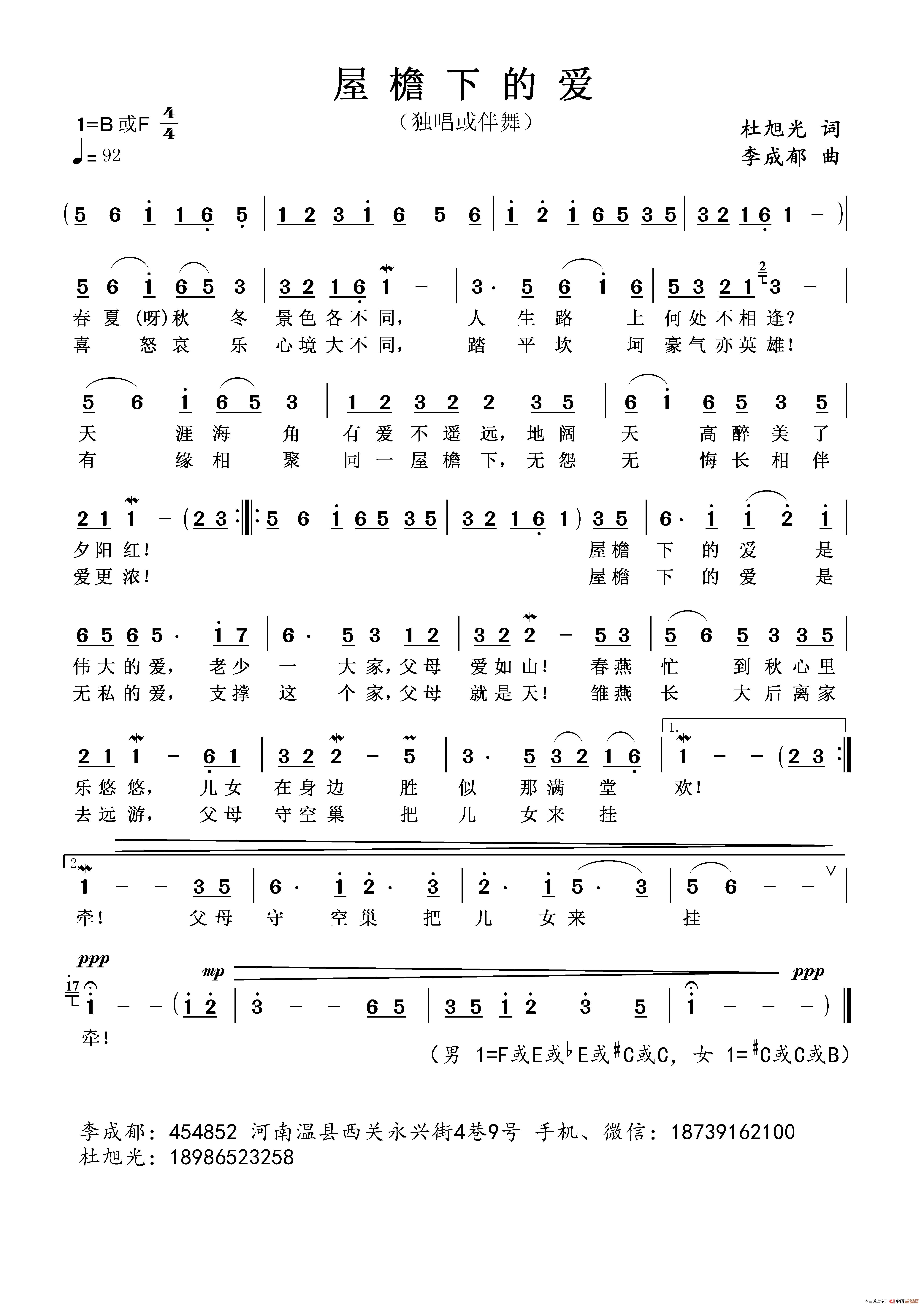 关于《屋檐下的爱》曲谱的评论