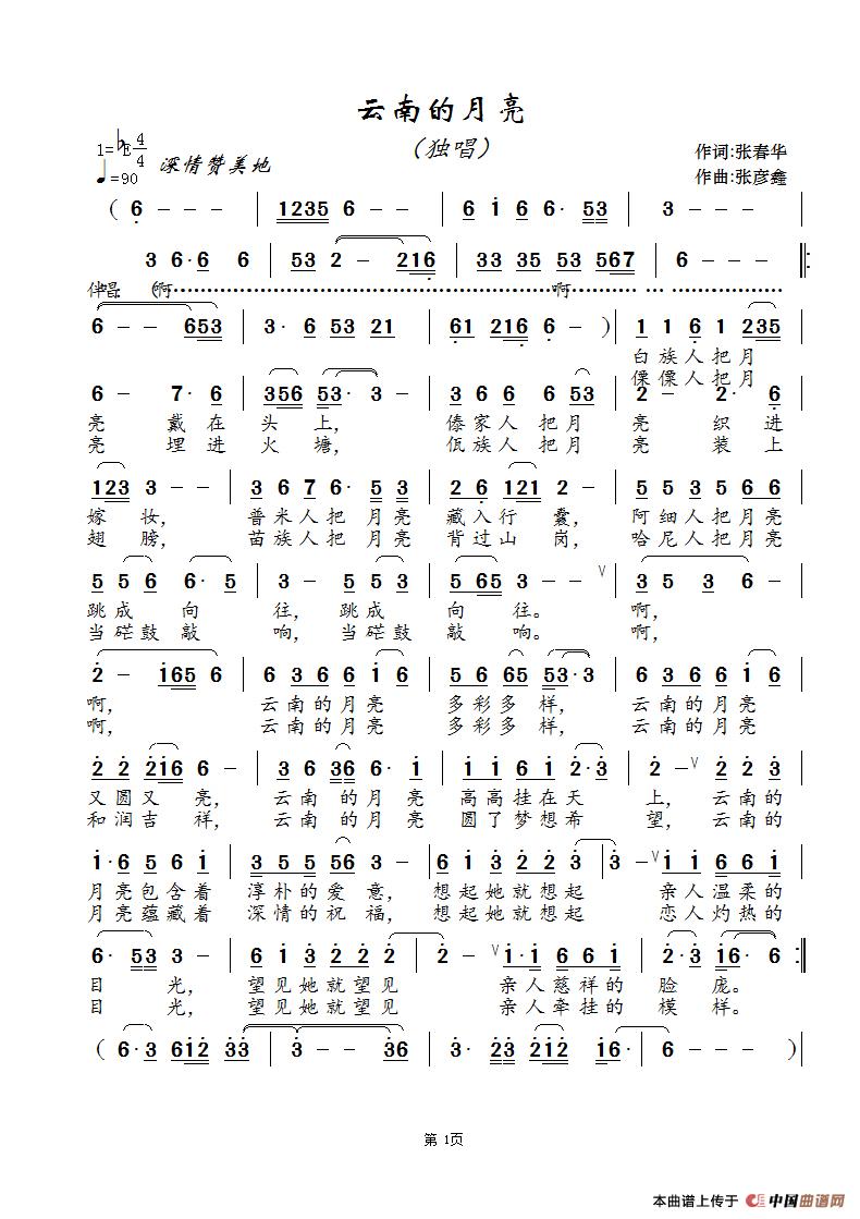 关于《云南的月亮》曲谱的评论