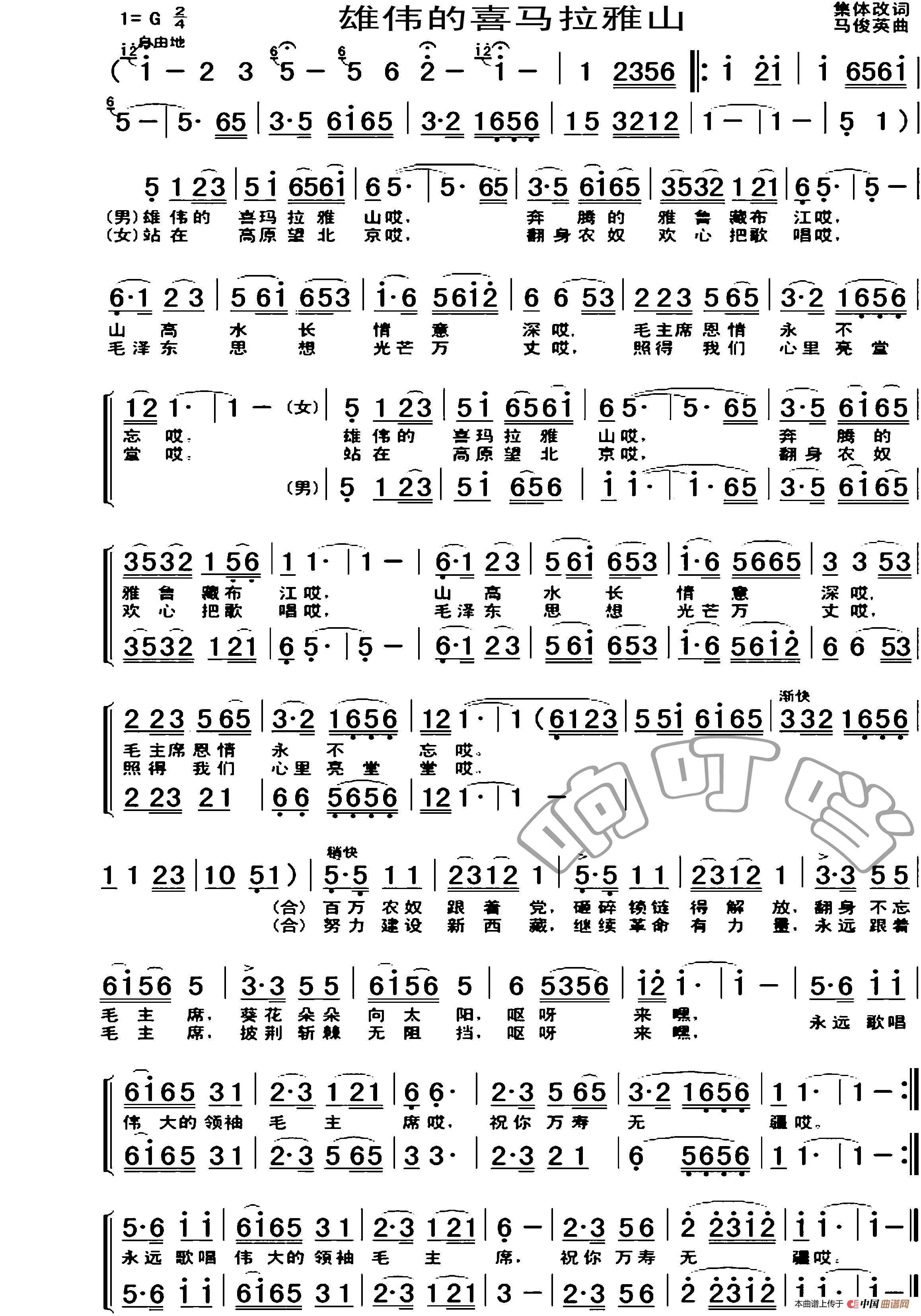 关于《雄伟的喜马拉雅山》曲谱的评论