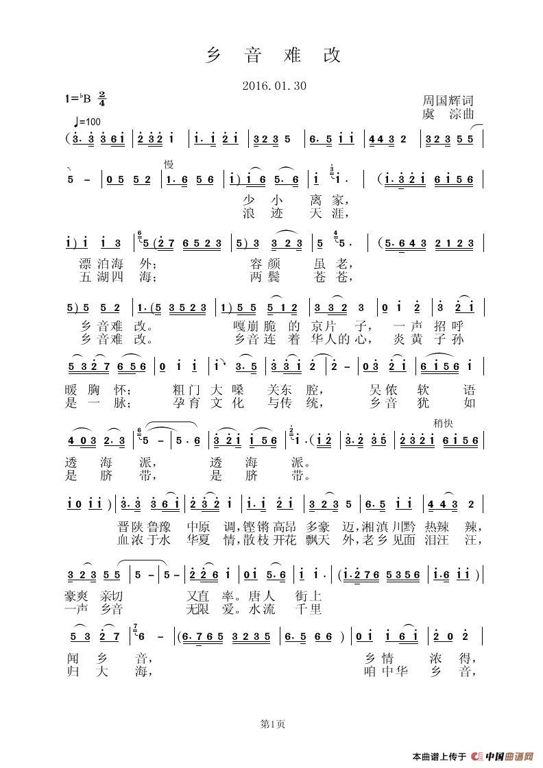关于《乡音难改》曲谱的评论