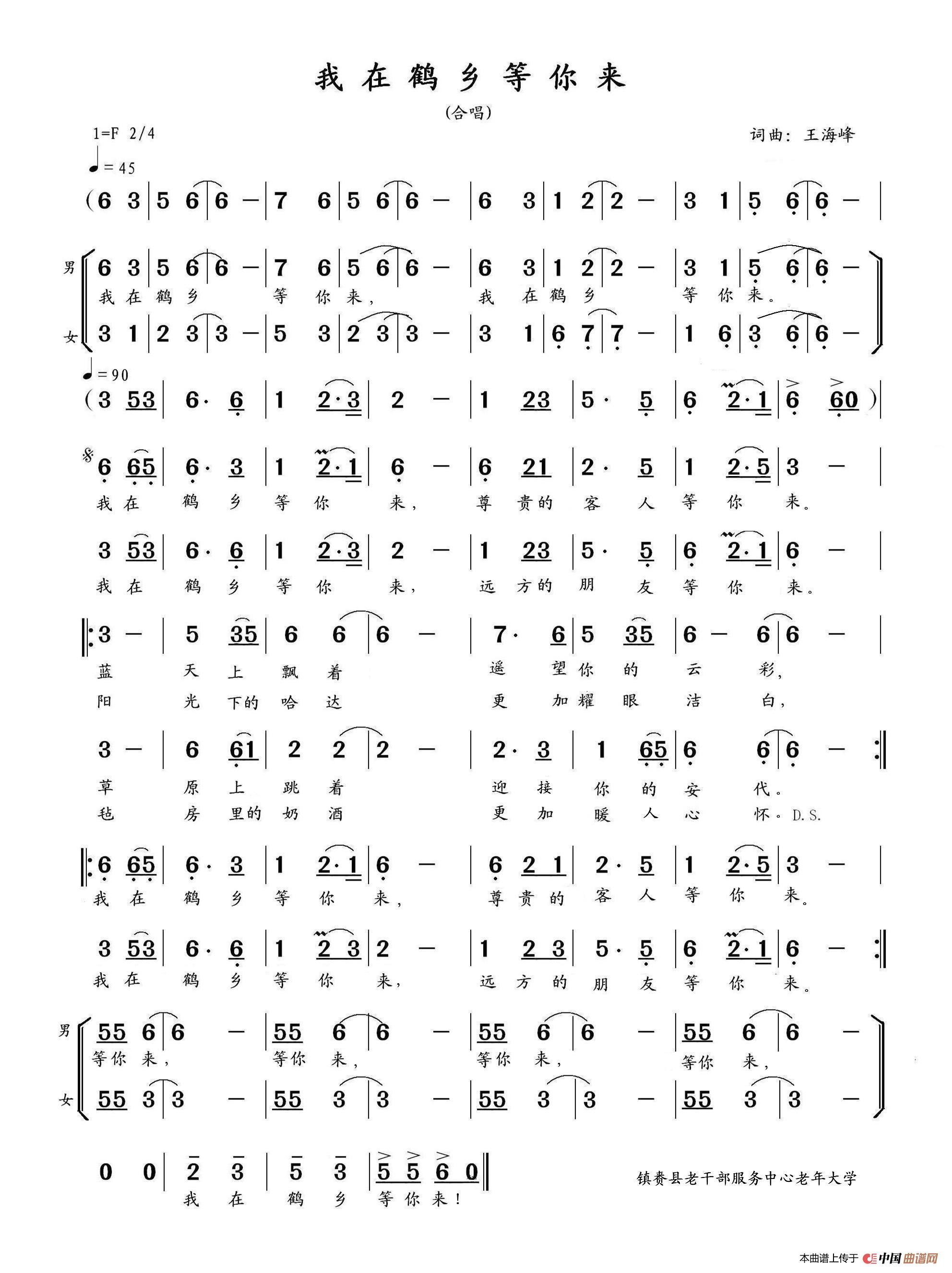 关于《我在鹤乡等你来》曲谱的评论