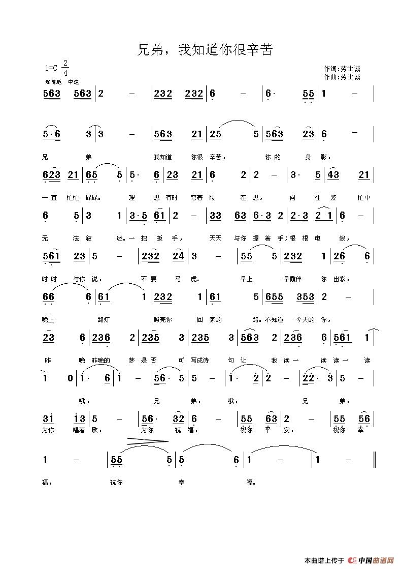 《兄弟,我知道你很辛苦》文本歌词