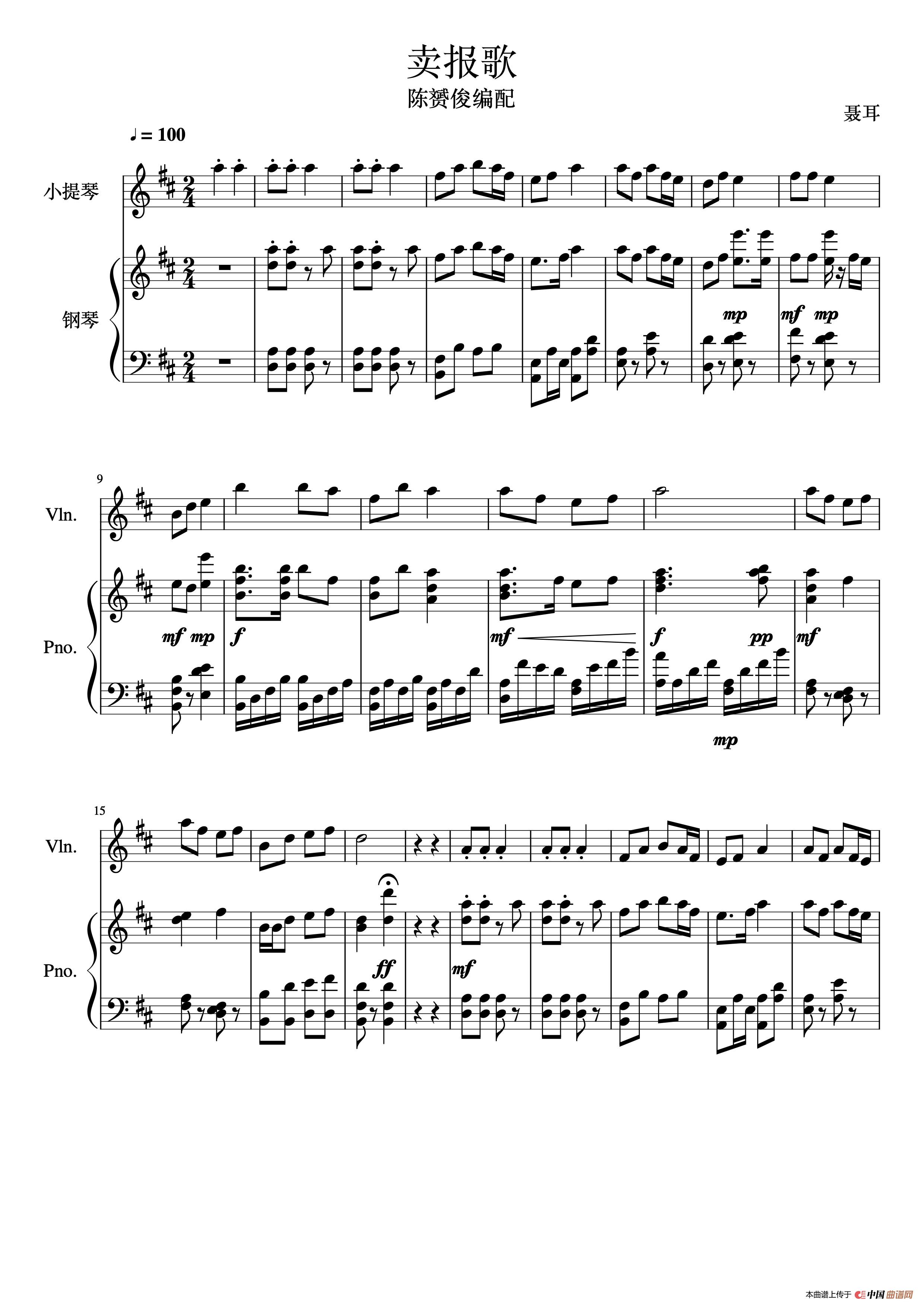 小提琴 独奏 卖报歌,钢琴伴奏。