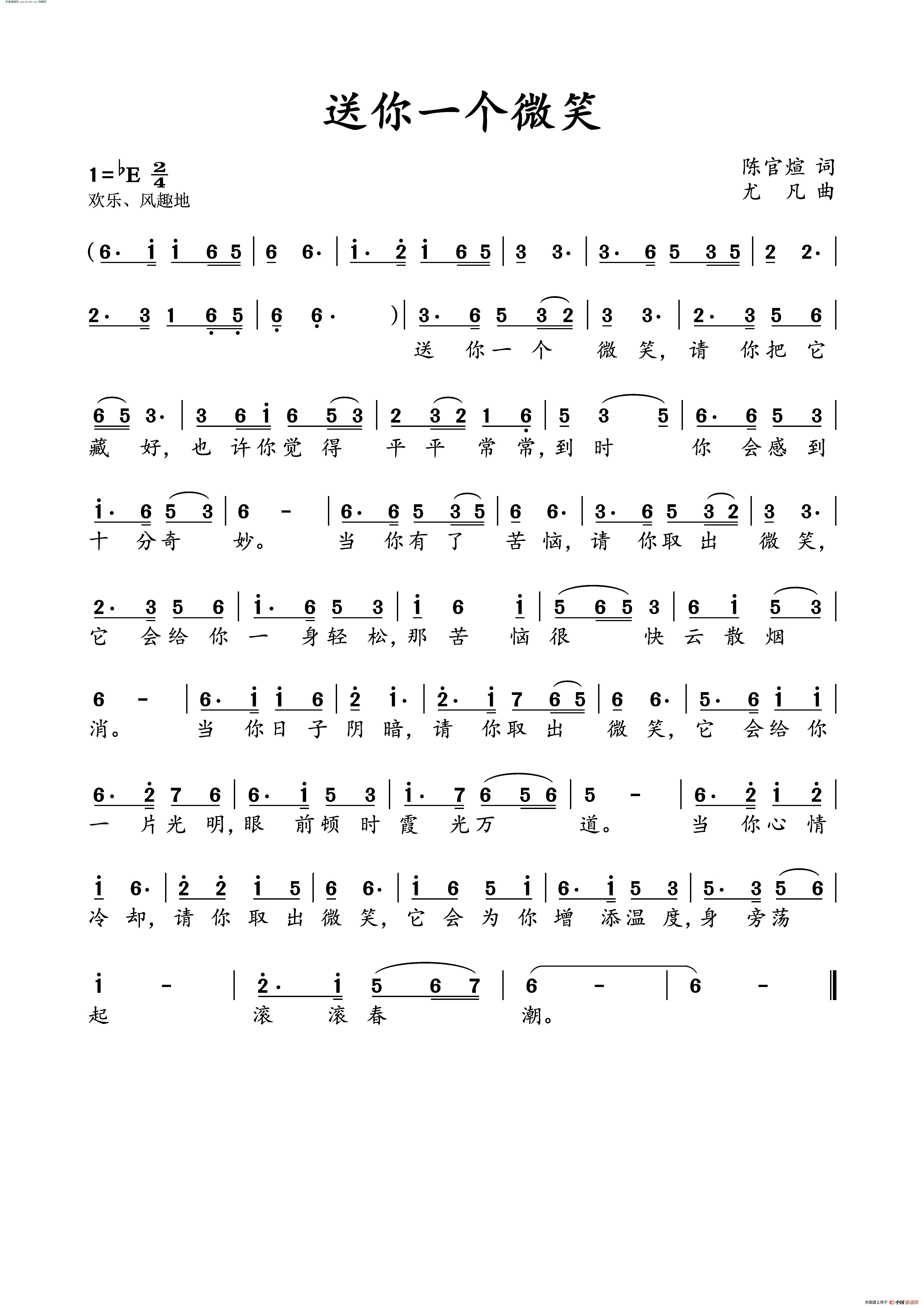关于《送你一个微笑》曲谱的评论