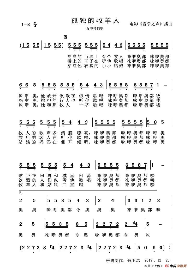 作词:电影《音乐之声》插曲 来源:谱友钱卫忠上传 上传:钱卫忠