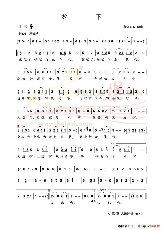 关于《放下》曲谱的评论