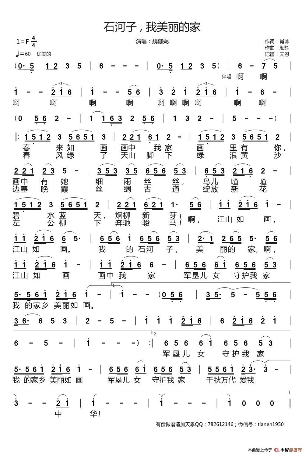 关于《石河子 我美丽的家》曲谱的评论