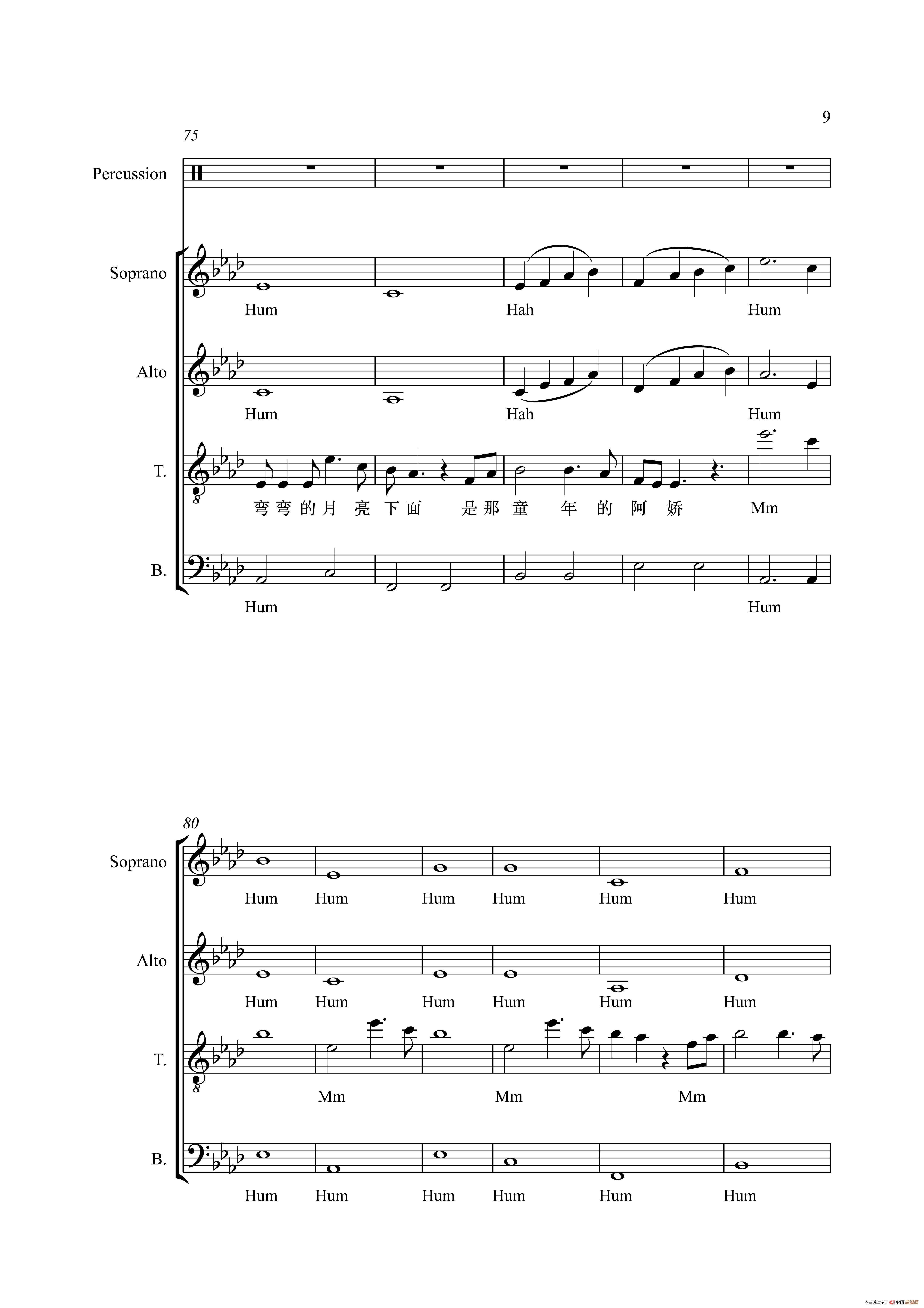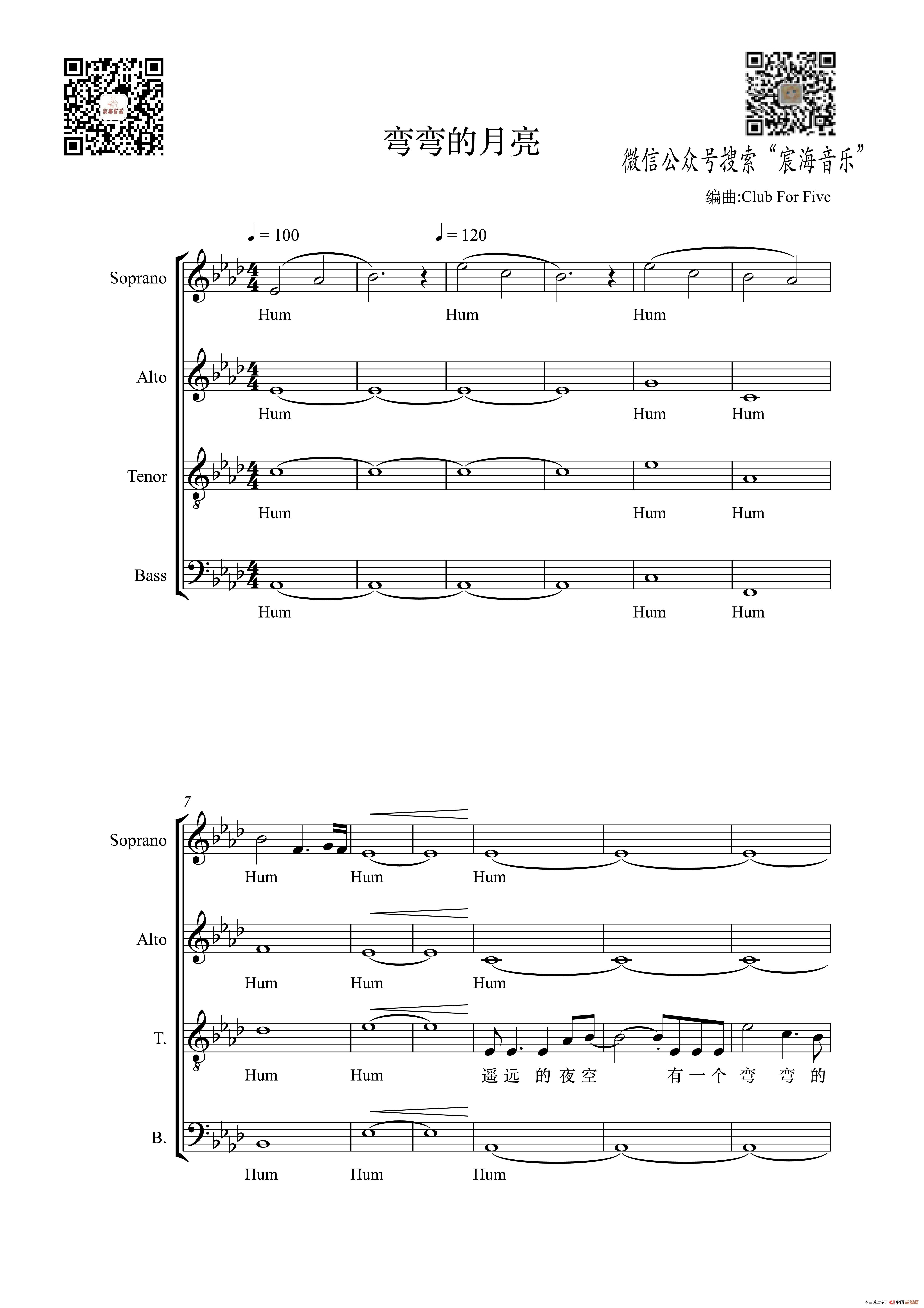 关于《弯弯的月亮 阿卡贝拉》曲谱的评论