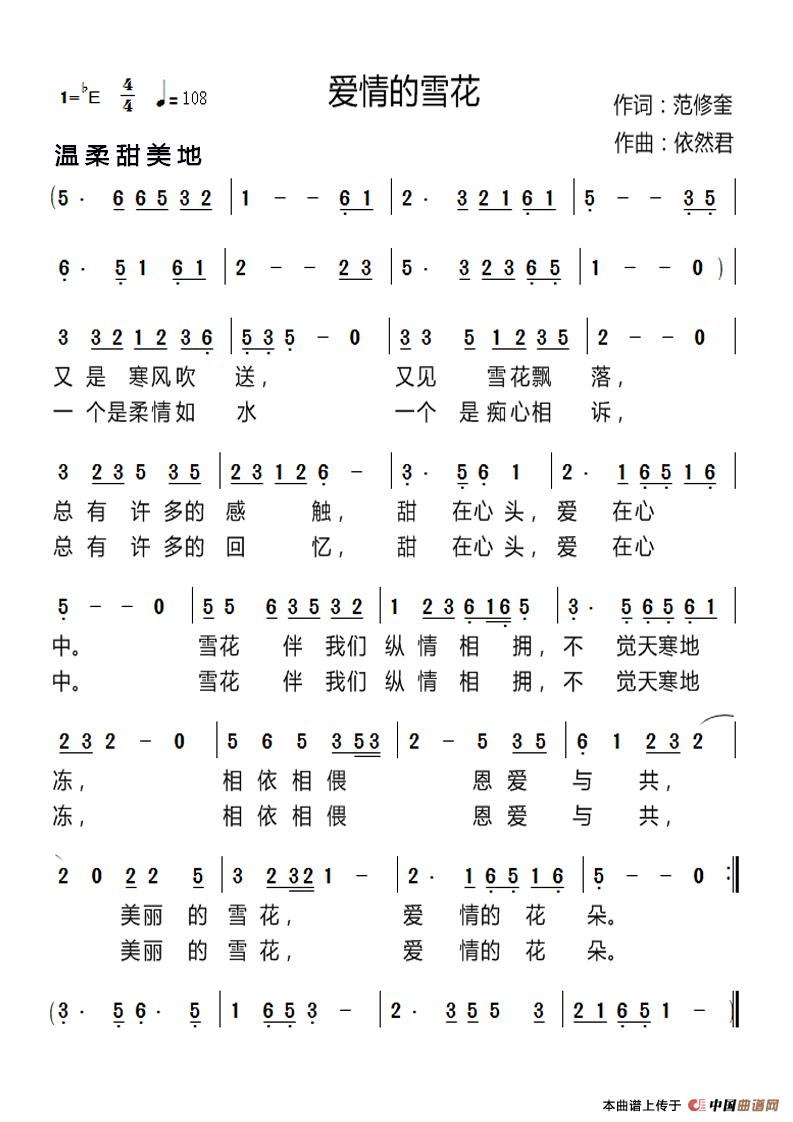 关于《爱情的雪花》曲谱的评论