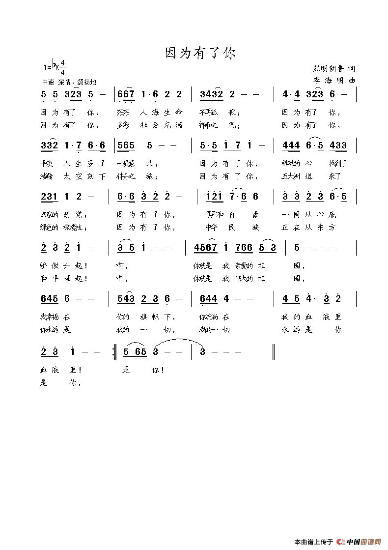 当前位置: 首页 谱友园地 谱友上传 因为有了你(熙明朝鲁词 李海明曲)