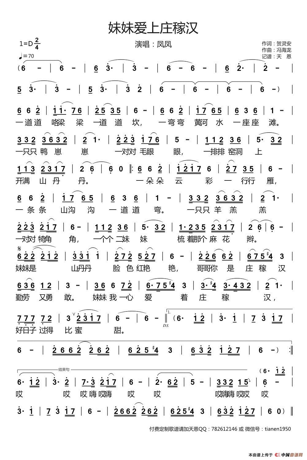 关于《妹妹爱上庄稼汉》曲谱的评论