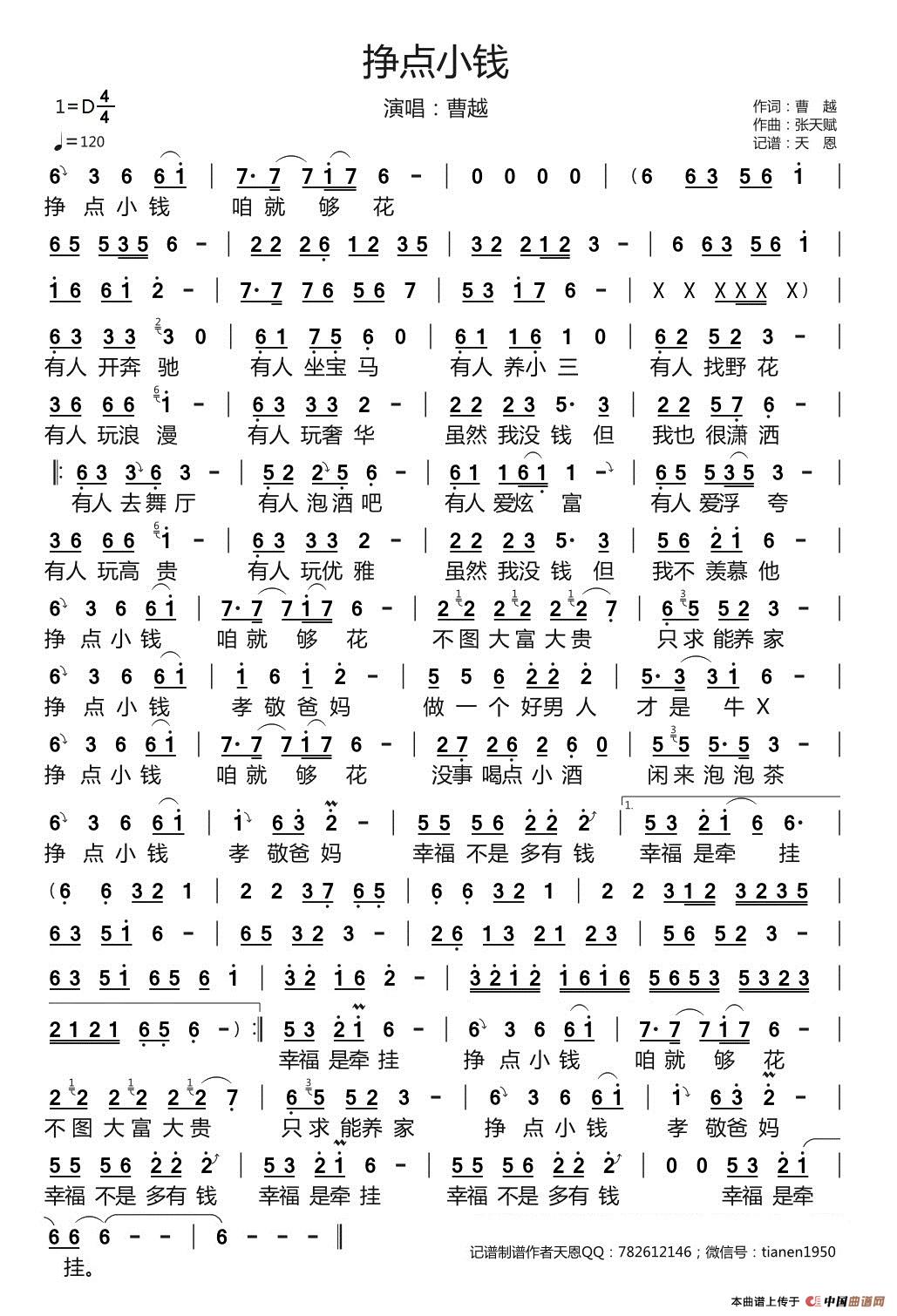 关于《挣点小钱》曲谱的评论