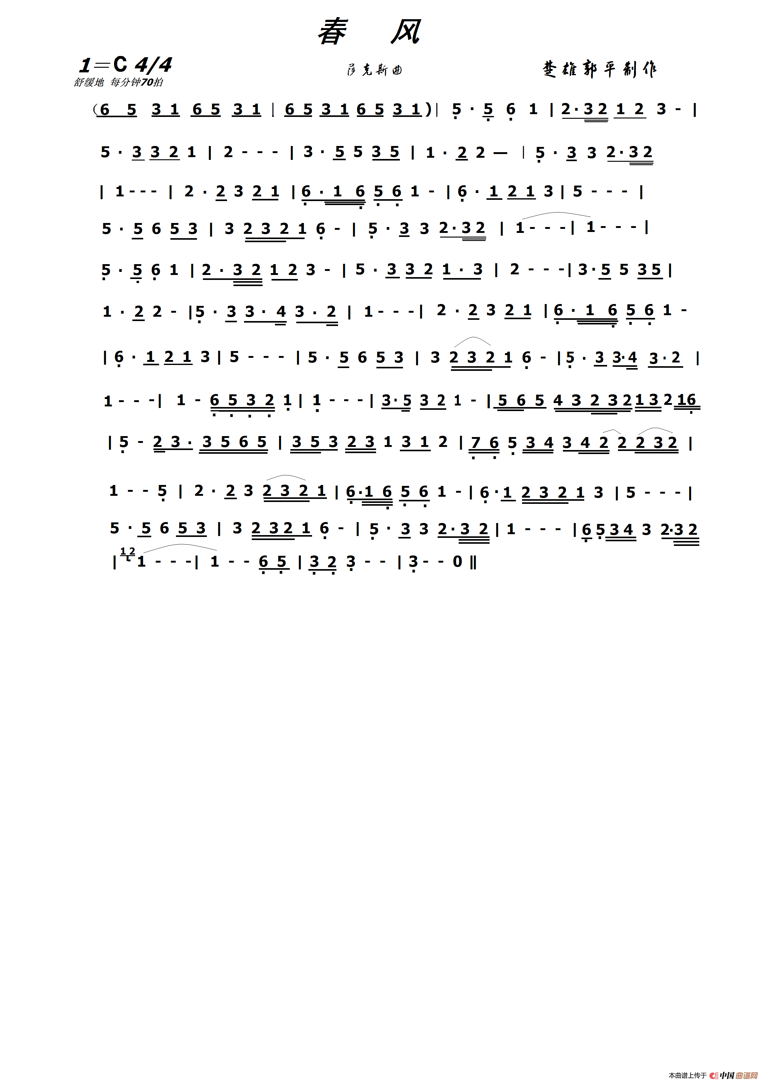 提示:在曲谱图片上单击右键,选择"图片另存为..."即可将曲谱保存到您的电脑中,打印时候可将图片插入到WORD中,调整合适大小打印即可。