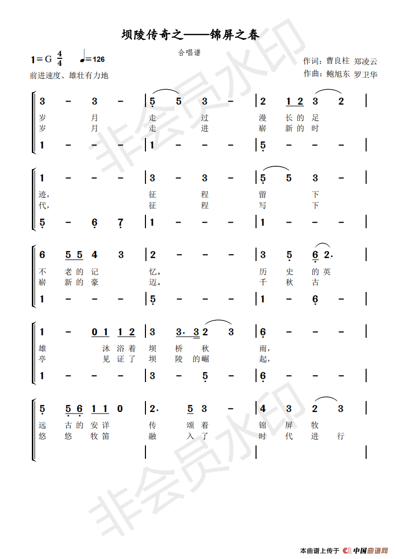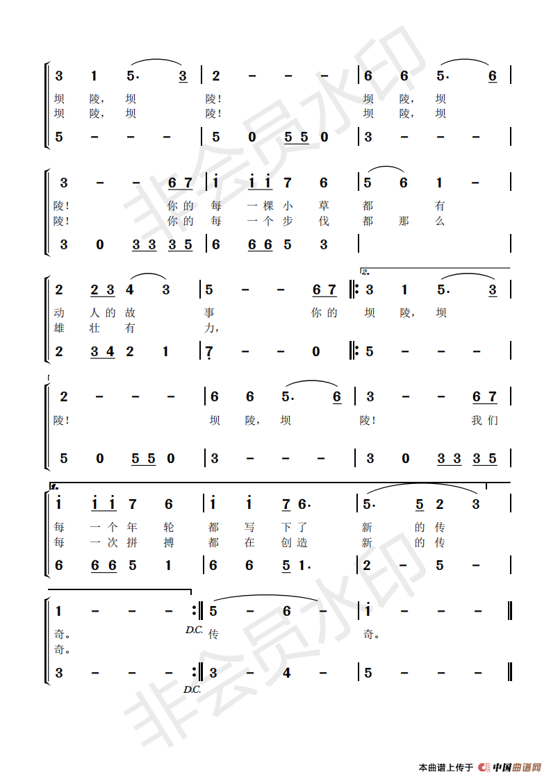 提示:在曲谱图片上单击右键,选择“图片另存为...”即可将曲谱保存到您的电脑中,打印时候可将图片插入到WORD中,调整合适大小打印即可。