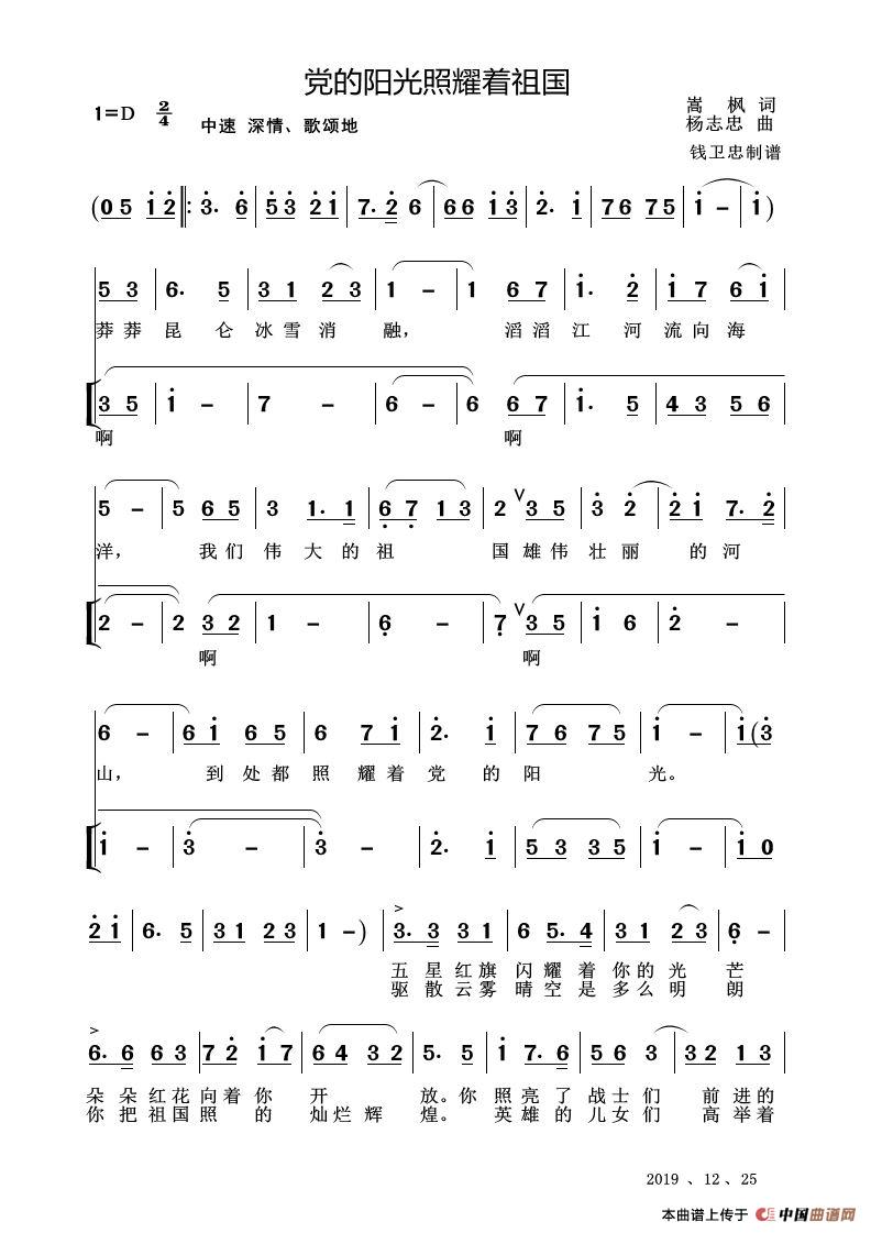关于《党的阳光照耀着祖国》曲谱的评论