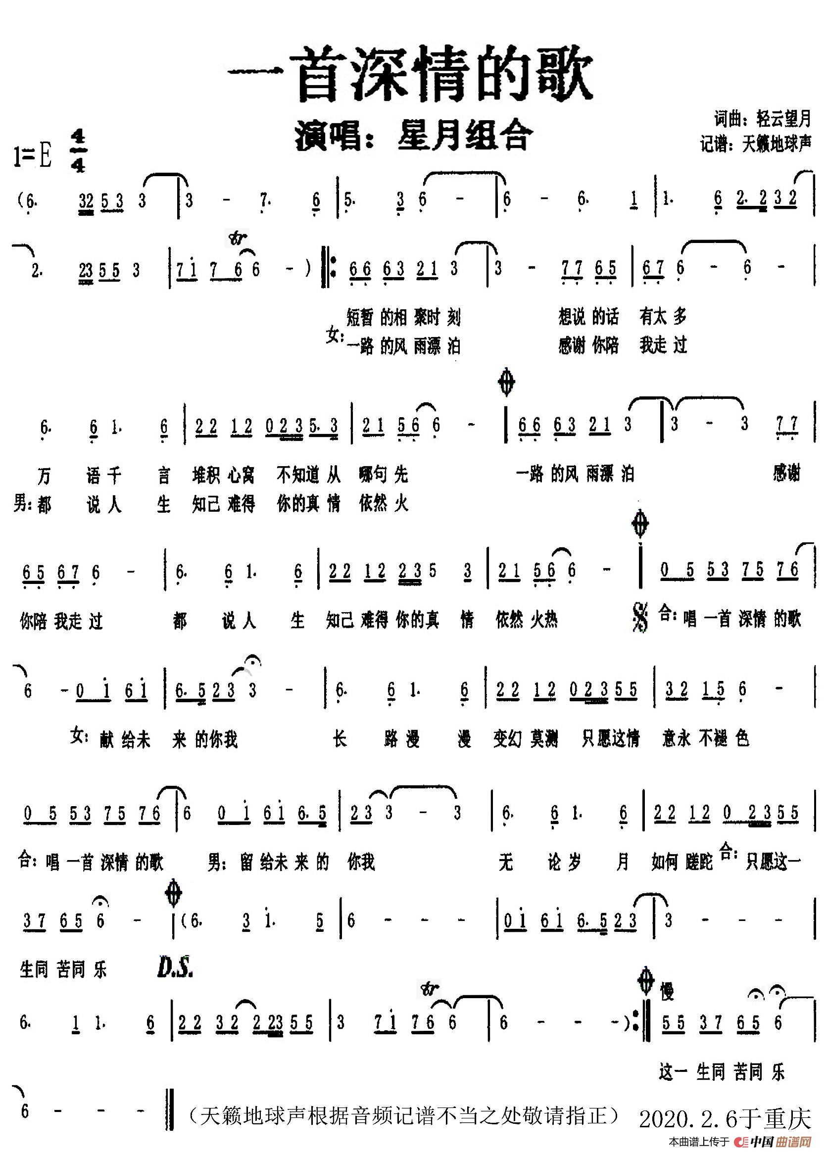 关于《一首深情的歌》曲谱的评论