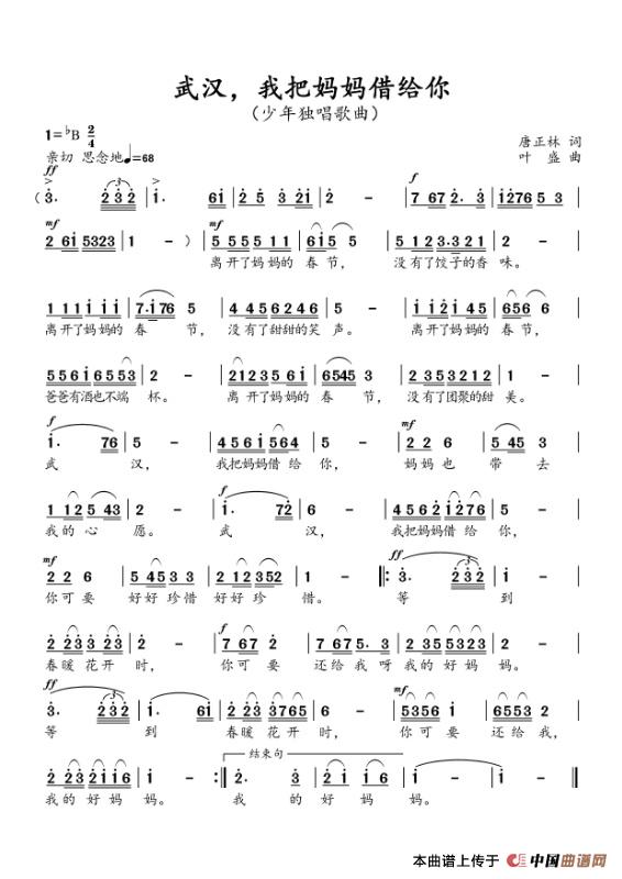 关于《武汉,我把妈妈借给你》曲谱的评论