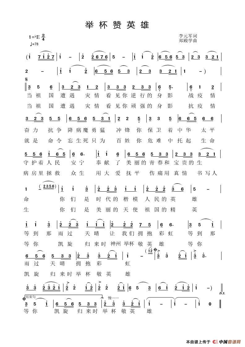 提示:在曲谱图片上单击右键,选择“图片另存为...”即可将曲谱保存到您的电脑中,打印时候可将图片插入到WORD中,调整合适大小打印即可。