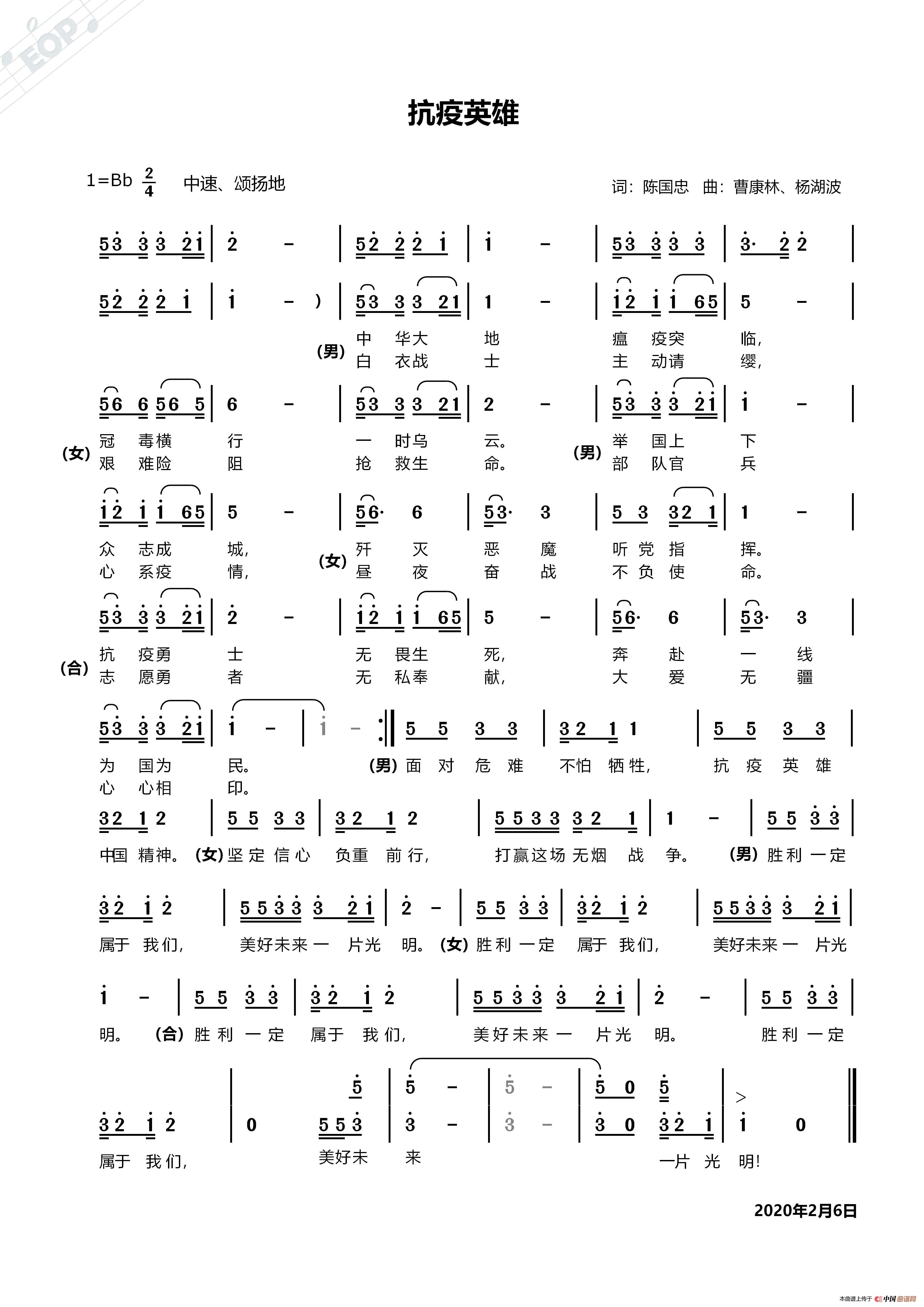 关于《抗疫英雄》曲谱的评论