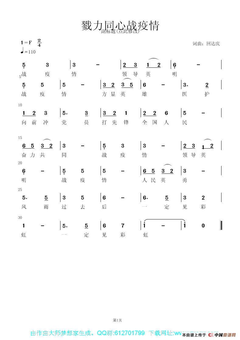 关于《戮力同心战疫情》曲谱的评论
