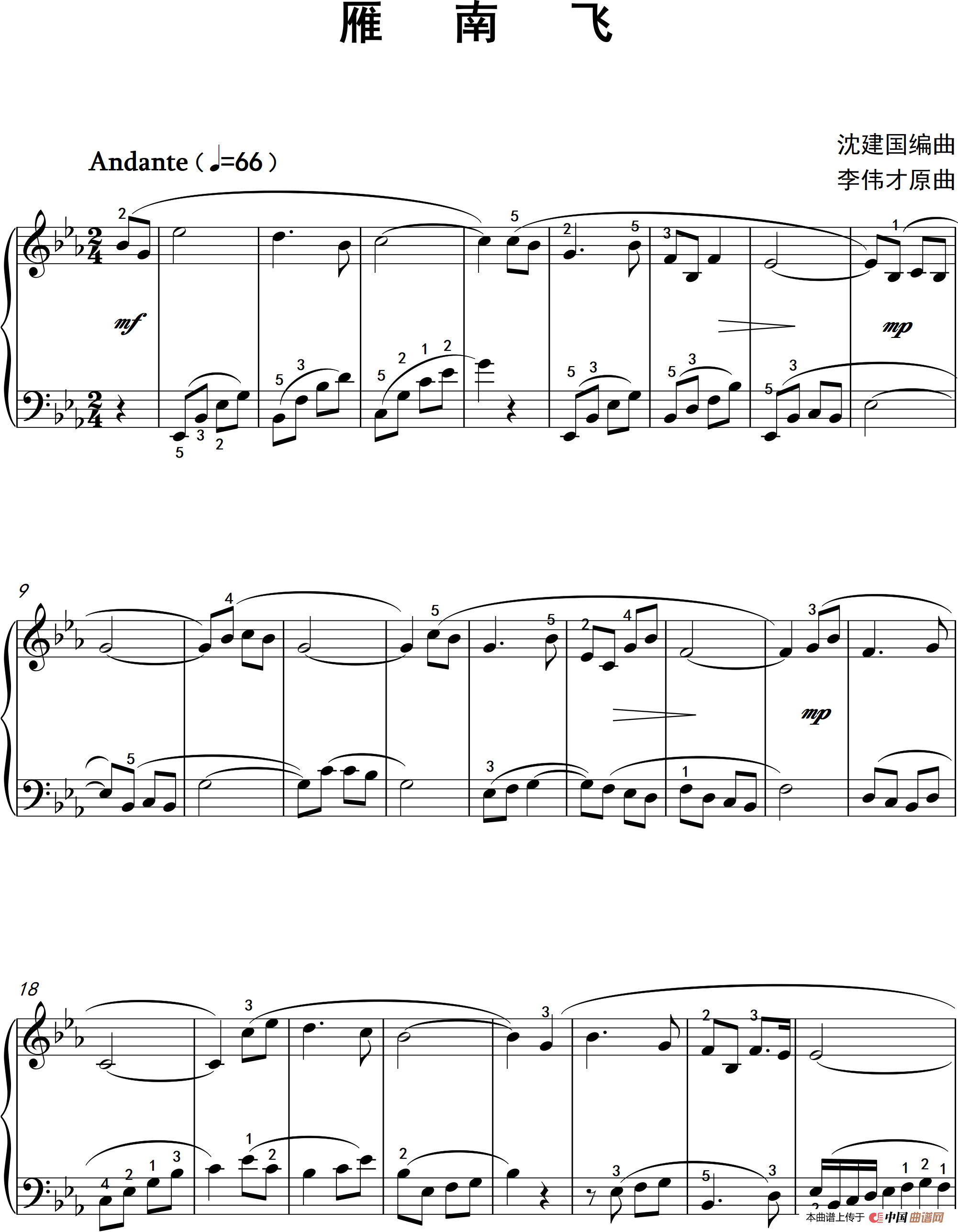 根据电影《归心似箭》中的插曲而改编的钢琴曲。难易程度相当于5级。