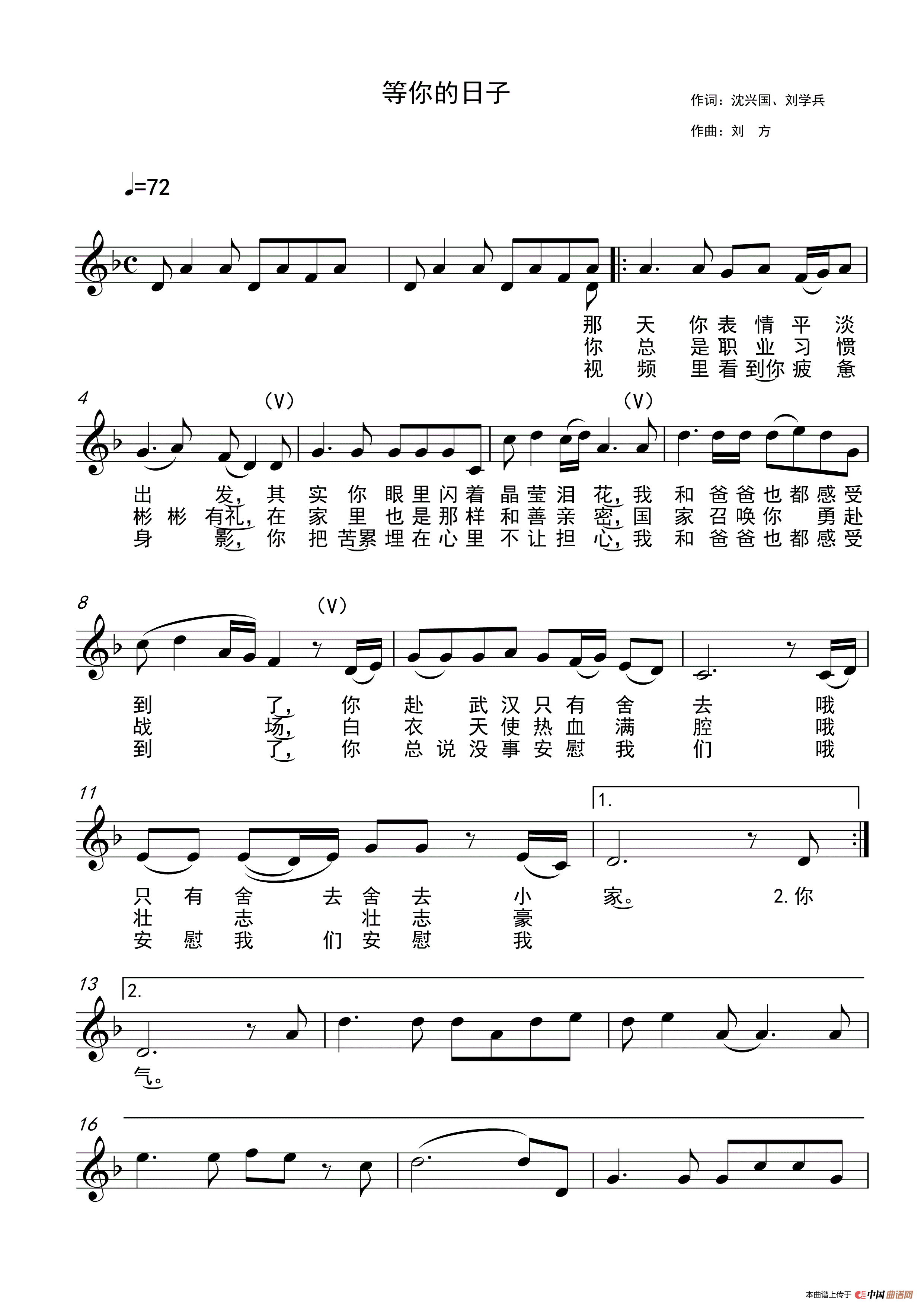 关于《等你的日子》曲谱的评论