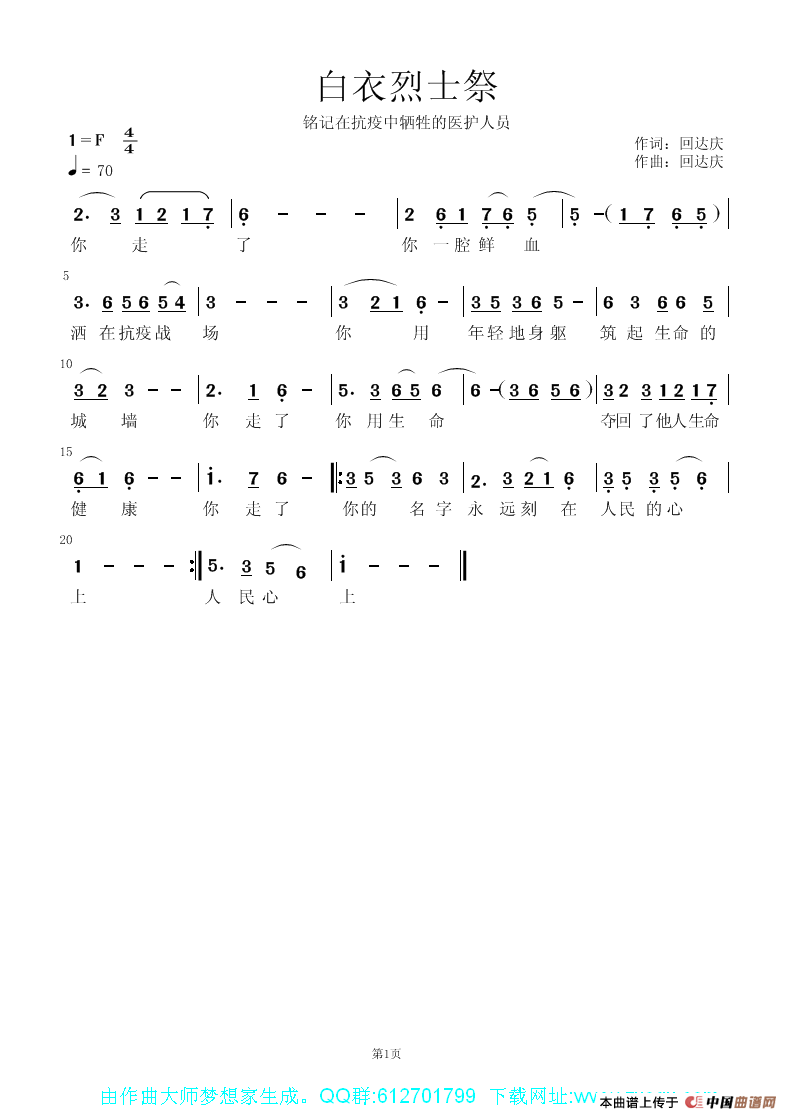 关于《白衣烈士祭(修改稿)》曲谱的评论