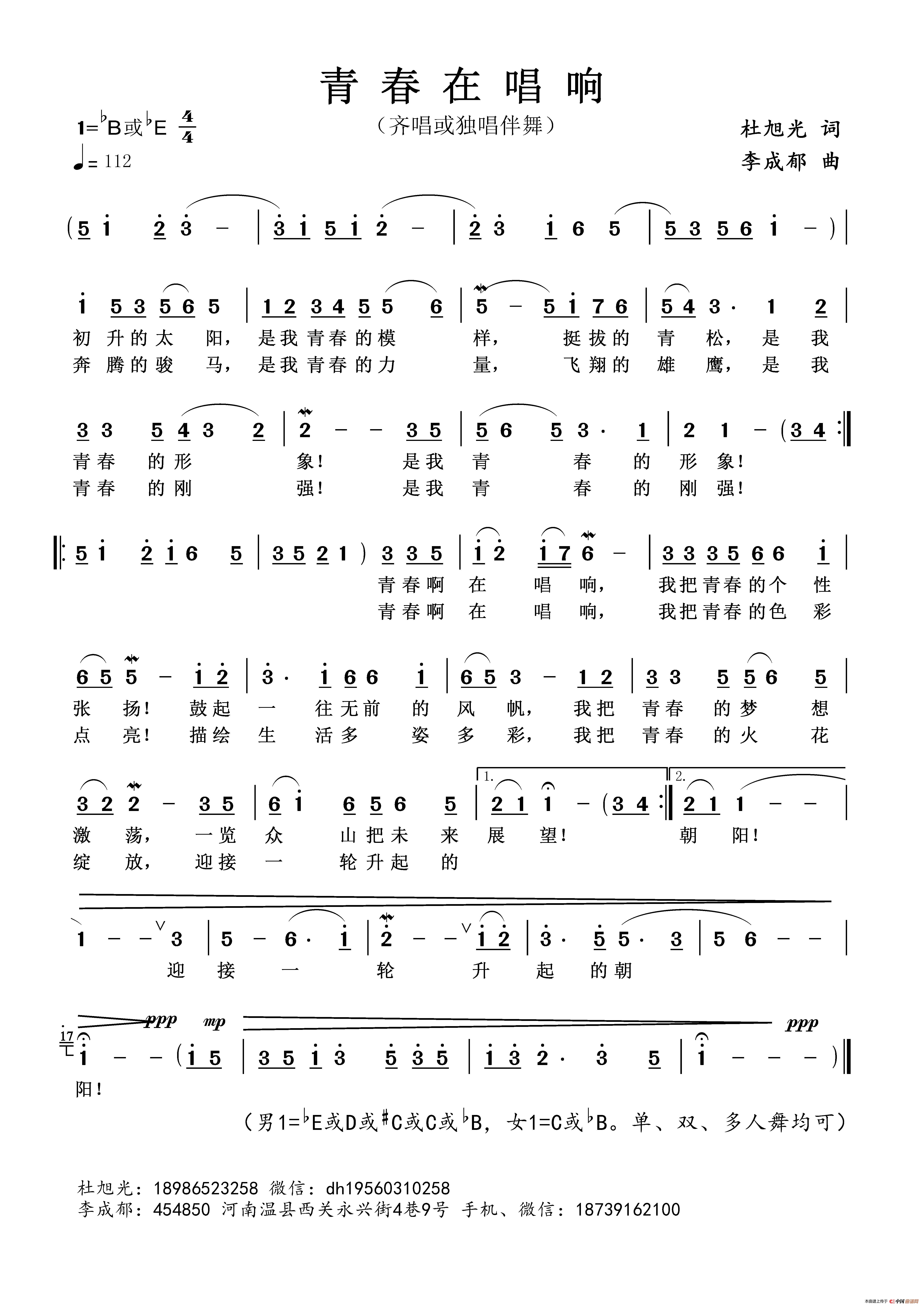 关于《青春在唱响》曲谱的评论