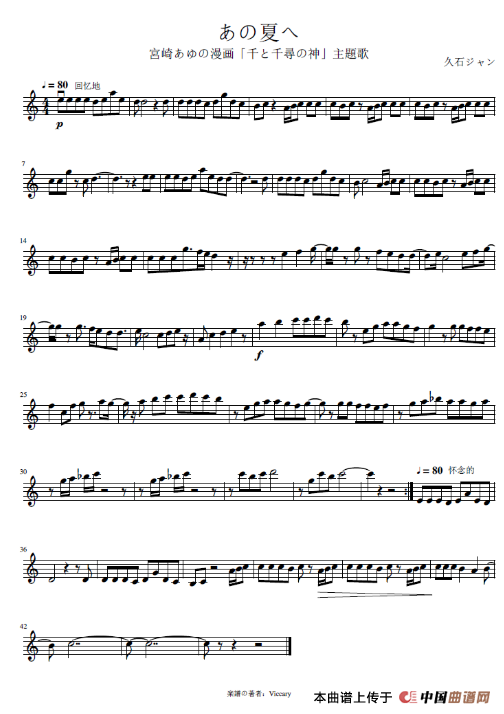作曲:久石ジャン 来源:谱友绝世Viccary上传 上传:绝世Viccary