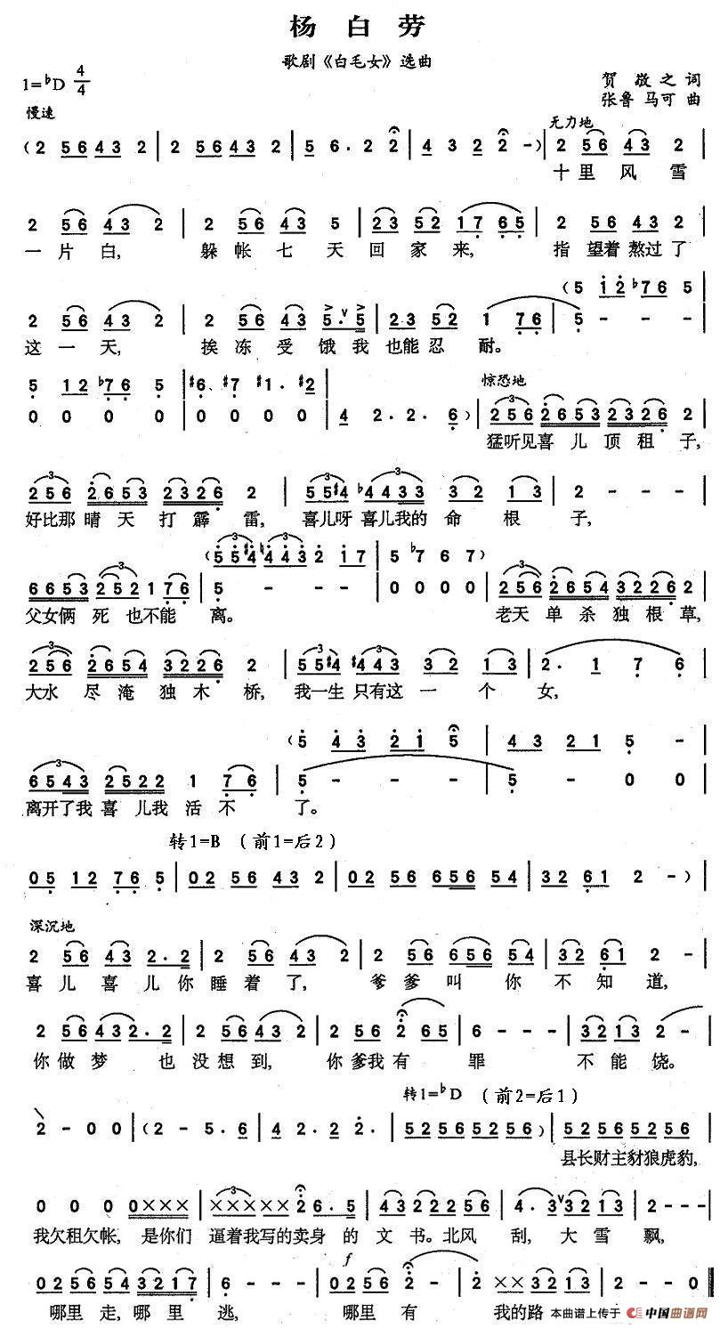 杨白劳简谱(歌剧《白毛女》选段杨白劳)