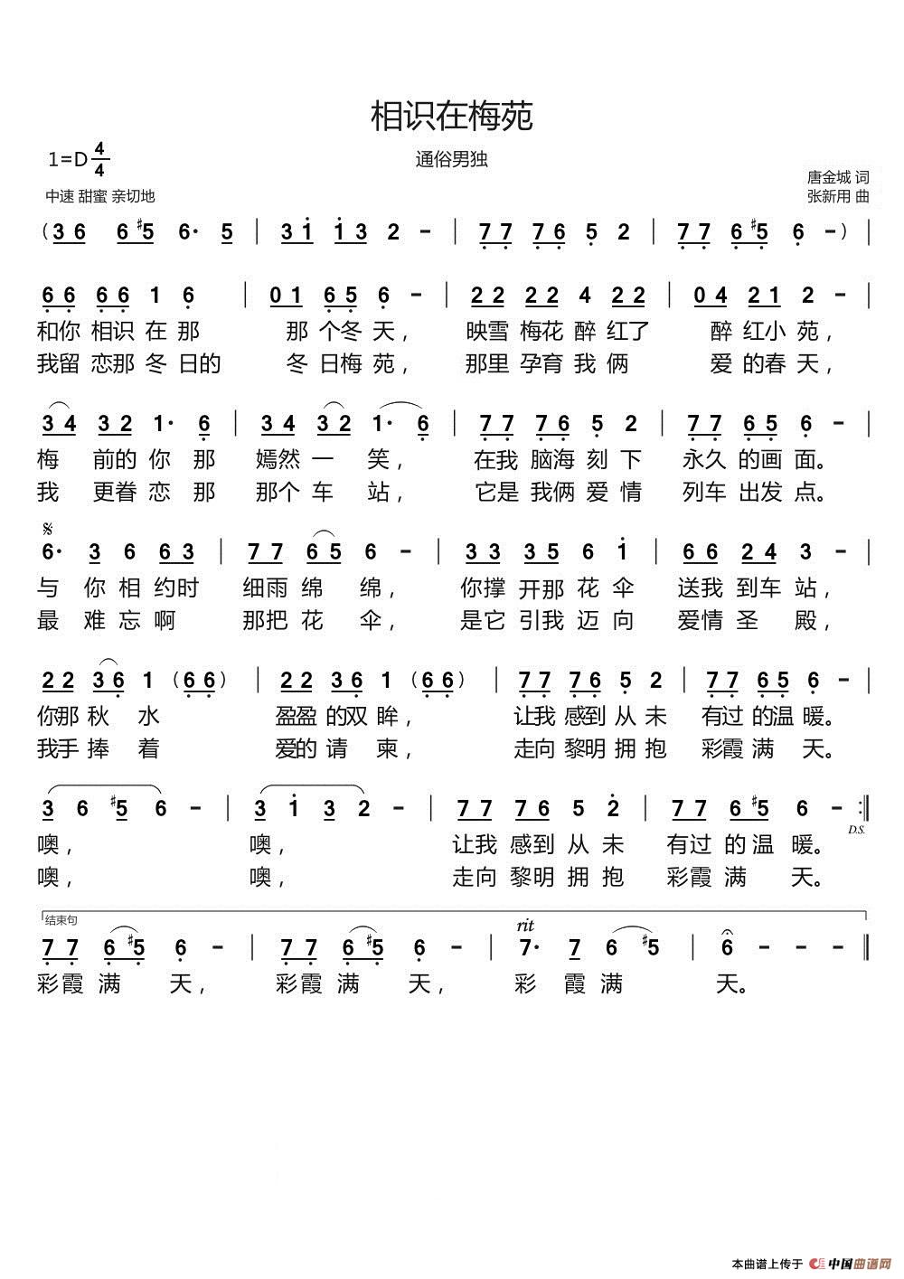 关于《相识在梅苑》曲谱的评论