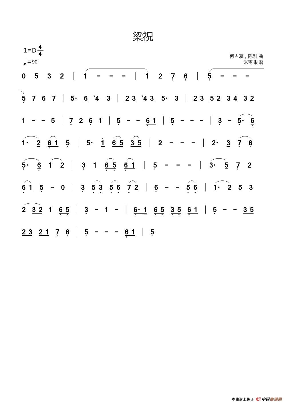 关于《梁祝》曲谱的评论