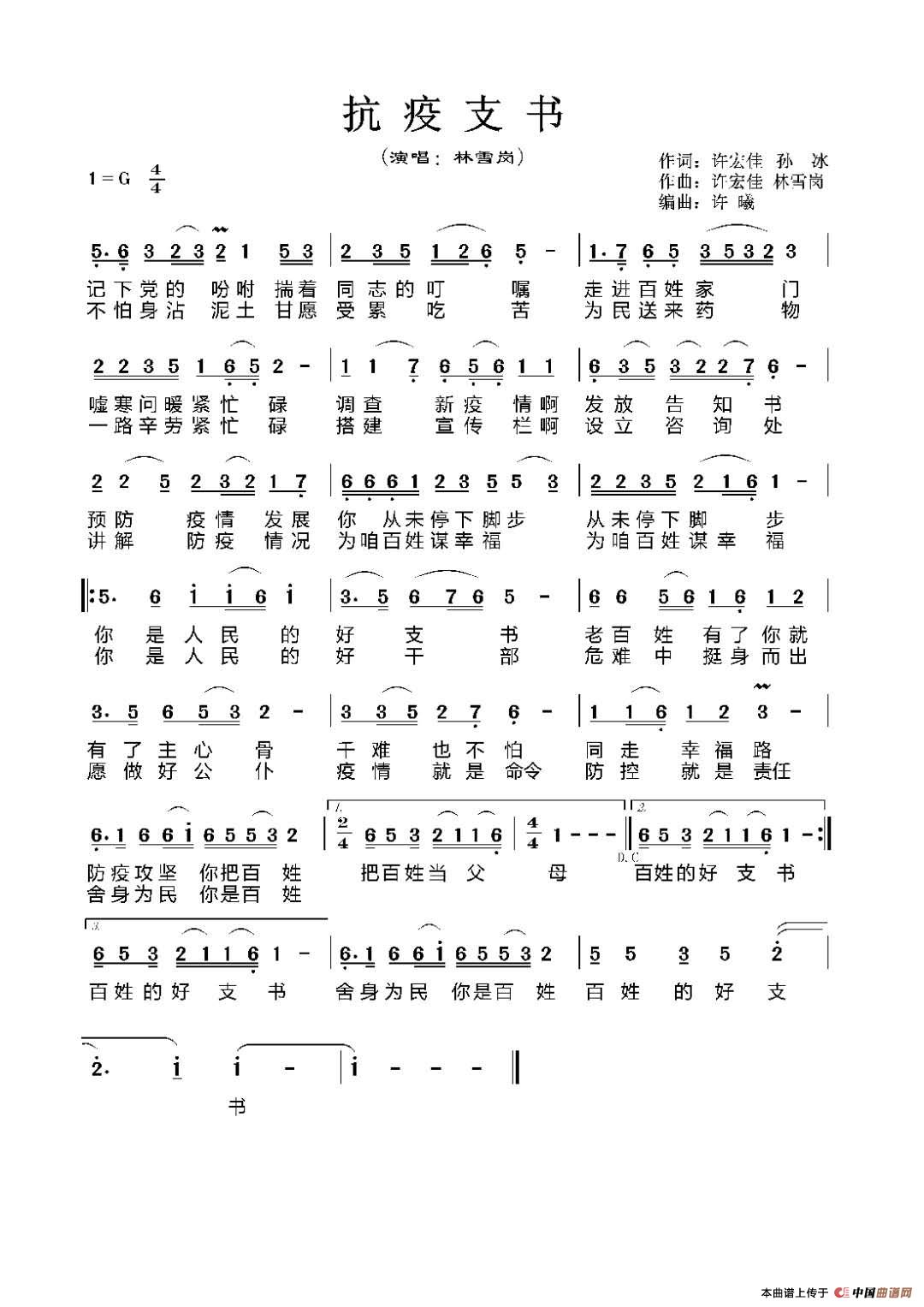 关于《《抗疫支书》歌谱》曲谱的评论